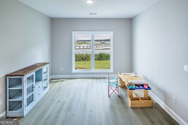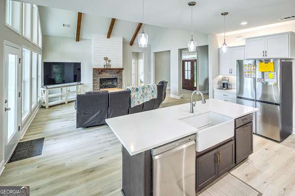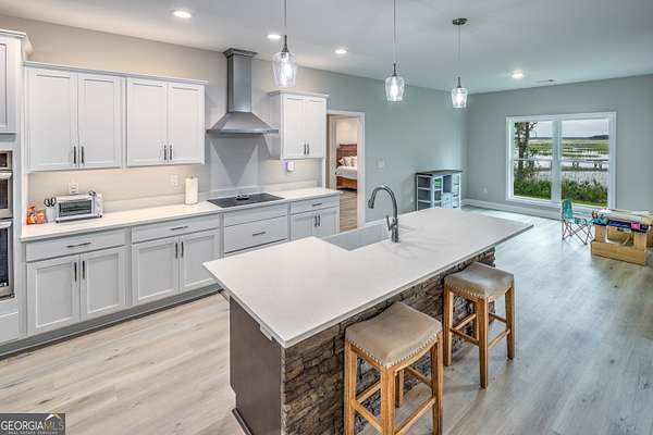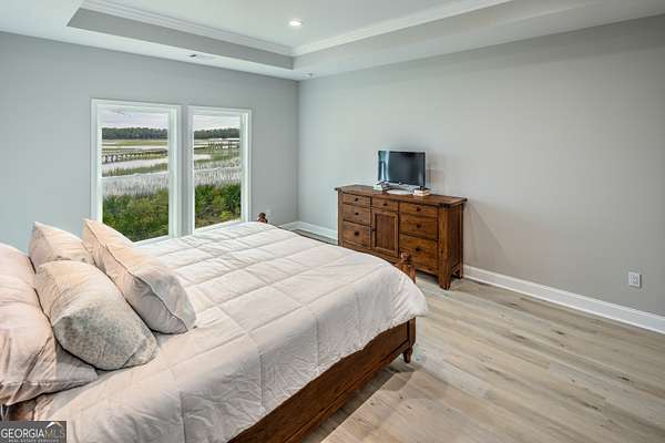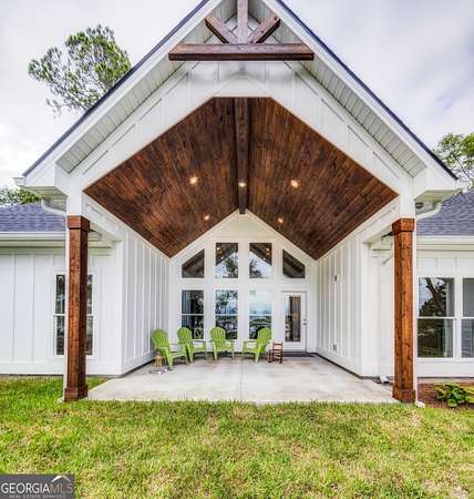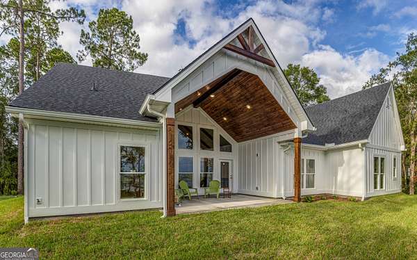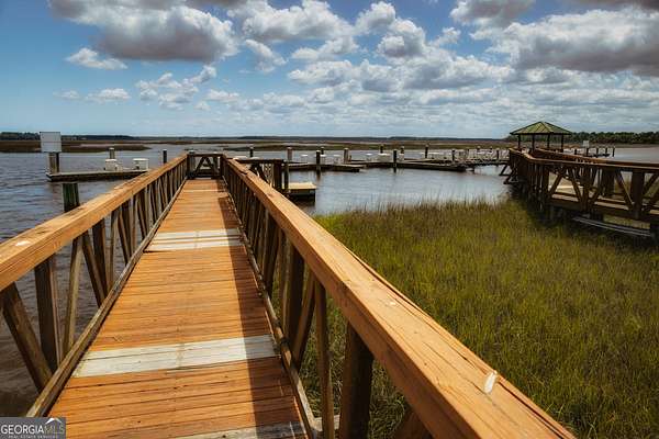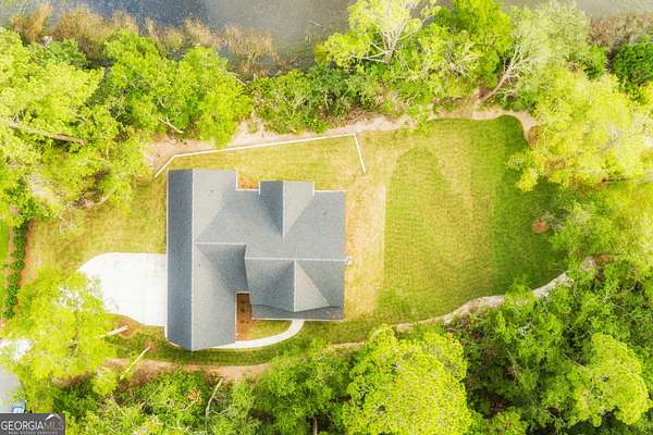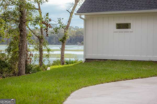 Nestled on a serene peninsula at the end of a quiet cul-de-sac, this brand-new Craftsman-style home at 87 Lighthouse Way in Woodbine, GA 31569 offers a tranquil retreat with approximately 400 feet of private waterfront along this deepwater property on Crooked River. Priced at $824,900, the 2,200 square-foot residence features three bedrooms and two-and-a-half bathrooms, designed with a split floor plan that emphasizes comfort and flow. The property includes dock rights, allowing for the addition of a personal dock, pavilion, and boat lift, with a seawall just steps from the marsh and river, inviting peaceful mornings watching the water. Inside, the home exudes quiet luxury with cathedral ceilings accented by exposed beams in the great room, where a cozy fireplace serves as a focal point. Expansive windows flood the space with natural light, framing captivating river views that blend seamlessly with the outdoors. The gourmet kitchen is a haven for relaxed gatherings, boasting a spacious island topped with granite countertops, stainless steel appliances including a wall oven and cooktop with vent hood, a charming farmhouse sink, and a large walk-in pantry. The master suite provides a private sanctuary, complete with river-facing windows, a trey ceiling, an expansive walk-in closet, and a spa-like bathroom featuring a separate tiled shower with rain head, dual vanities with marble countertops and a seated vanity area, a water closet, two linen closets, and pre-wiring on a dedicated 20-amp circuit for a potential sauna. On the opposite side, two additional bedrooms each offer walk-in closets, ensuring ample space for family or guests. Thoughtful details enhance the home's efficiency and versatility, including a three-car garage, abundant attic storage with plywood flooring and blown insulation for optimal temperature control, a 400-amp electrical panel with a separate 100-amp sub-panel for future additions like a pool, dock, or hot tub, dedicated breakers for a whole-home generator and electric vehicle charger, separate dedicated 20-amp circuit for a future irrigation well, and a sprinkler system to irrigate all of the brand new Saint Augustine sod. The septic system includes a pump and alarm for reliable operation. Entry is through a welcoming foyer and front porch, while the back patio, with its hardwood ceilings and pre-wiring for a TV, extends the living space outdoors in a subtle, elegant manner. Situated in the secure, gated community of Misty Harbor, residents enjoy access to well-maintained amenities such as tennis courts, a playground, swimming pool, picnic areas, a community room, boat and RV storage, a marina, boat launch, and pavilions with fire pits, all fostering a sense of calm community living. Conveniently located just 20 minutes from Kings Bay Submarine Base, 35 minutes from Jacksonville International Airport and Brunswick, GA, and 50 minutes from Jekyll Island, GA, the property also provides easy deepwater access to Cumberland Island, Fernandina Beach, and the Atlantic Ocean once a dock is built, making it an ideal spot for those seeking a harmonious blend of seclusion and connectivity.