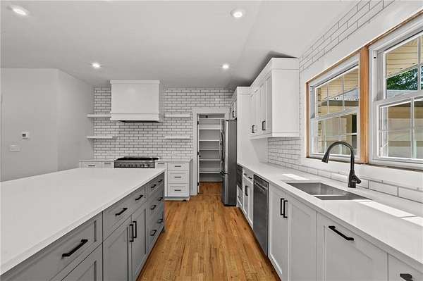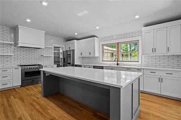 FANTASTIC Opportunity for a Renovated Ranch with Full Basement on 2 Level Acres! Original 2600 square feet is now an Appraiser-measured 5000+ square feet of Professionally Expanded and Updated Living Space! In the Shadows of Kennesaw Mountain and Convenient to Everything West Cobb, this 5-bedroom, 3+ bathroom Home just off Barrett Pkwy is Move-In Ready and Available Now! Main Level is 4 Bedrooms, 2+ Bathrooms, Laundry and A TERRIFIC Kitchen, Dining and Family Open Concept Design with A Floor-to-Ceiling Fireplace. Perfectly Designed for Large Entertaining Events! Terrace Level is a Complete 1-Bedroom, 1-Bathroom Residence with Kitchenette Plus Garage Parking for 4 Vehicles and a 400+ square foot Workshop with 220-volts. THIS MUCH Quiet Space is Not Available Often! Take Advantage NOW!