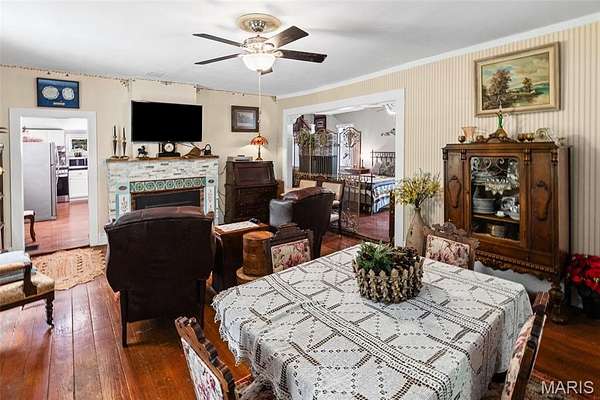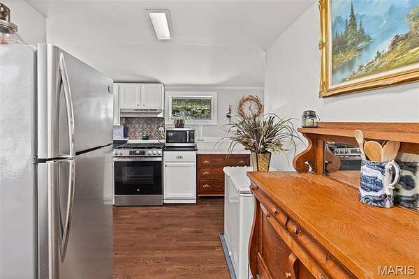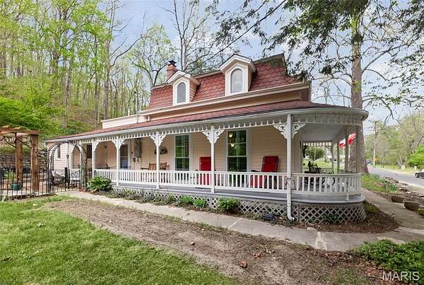 Tucked into the heart of the historic river village of Elsah, 87 Mill Street is the kind of home that feels like it belongs in a storybook - quiet, charming and surrounded by natural beauty. This darling 2 bedroom, 2 bathroom cottage offers approximately 1530 square feet of warm, inviting living space, blending historic character with thoughtful updates. From the moment you arrive, the home's cozy cottage presence and peaceful setting set the tone. A welcoming wrap-around porch invites you to slow down- perfect for morning coffee of evening sunsets overlooking the quaint village streets and wooded backdrop. Inside the home feels bright and airy, highlighted by floor to ceiling windows that flood the space with natural light. The layout is both functional and intimate, with comfortable living areas that flow easily for everyday living or weekend retreats. The kitchen comes fully equipped with appliances, making it move in ready and ideal for effortless living. Upstairs and throughout you will notice charming craftsmanship details- including a rebuilt interior bannister adding to the home's unique character and historic appeal. What truly sets this property apart is its rare combination of village living and private land. Situated on approximately 4.5 acres, the home includes wooded hillside acreage behind it, offering privacy, scenic views and a sense of escape rarely found in such a quaint, walkable community. Updates include 5 new windows, new Anderson Storm Door, dishwasher and stove 2024, new electric service to the house and new electric panel, fencing all around the main yard, dehumidifier added in cellar, outside repainted, stone added to gas fireplace, and landscaping.