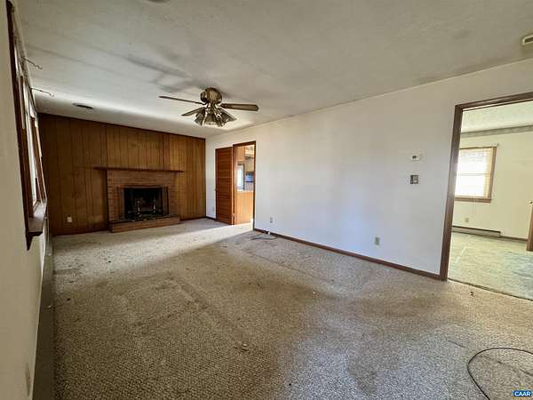 Looking for a 6 car garage? Here it is!! Roll up your sleeves and build instant sweat equity in this diamond in the rough with the big-ticket items already done. Enjoy peace of mind with newer windows, roof and central A/C, plus beautiful hardwood floors waiting to be revealed beneath the carpet. This solid brick ranch offers great bones, tall basement area ceilings, and a dry, full walk-down/walkout basement-ready to be finished and nearly double your living space. The main level features 3 bedrooms and two full baths, along with generous living areas including a living room and a sunroom with a cozy gas fireplace. Outside, the 4-acre lot provides room to roam, garden or expand. And then there's the SHOWSTOPPER: an 1800 sq ft outbuilding with a 6-CAR GARAGE, plus a horse barn-perfect for hobbyists, car enthusiasts or those seeking extra storage or workspace. Come see today!