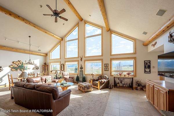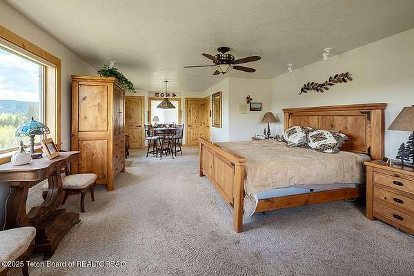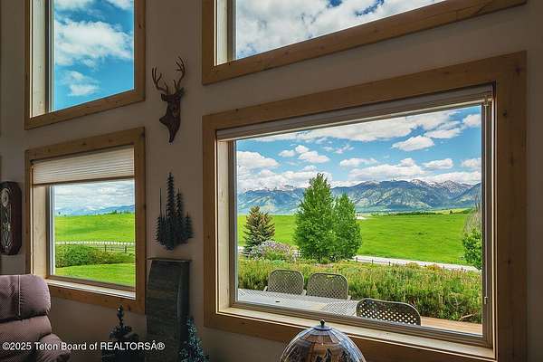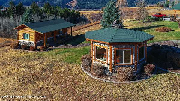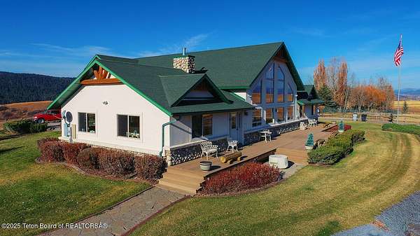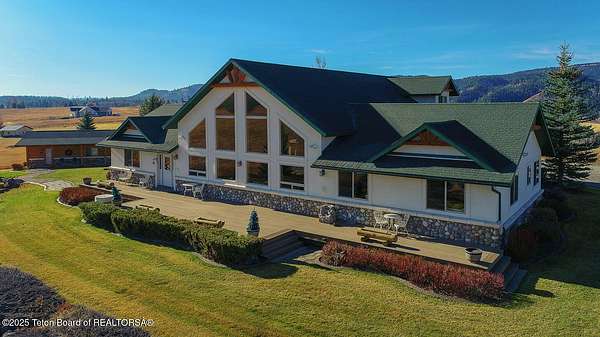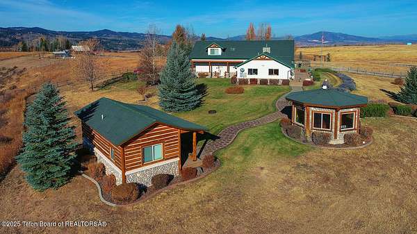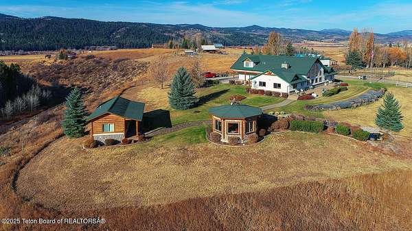 Custom home with outstanding views, fully furnished guest cabin, Jacuzzi Spa and stable in Thayne, WY - a stunning high-end residence designed for those who appreciate the finer things in life. Located just 57 miles from Jackson Hole and Yellowstone National park. Nestled on an expansive 4.86-acre lot, this well-constructed home offers 3 spacious bedrooms and 2 luxurious bathrooms within 3,408 square feet of open living space. Step inside to be greeted by an abundance of natural light filtering through large windows, which perfectly frame the breathtaking panoramic views. The open floor plan effortlessly blends modern living with the tranquility of nature, creating an inviting atmosphere perfect for entertaining or relaxation. The home features a loft area, ideal for a game room, providing a versatile space for leisure or entertainment. For guests, there is a charming cabin that offers a cozy retreat, ensuring privacy and comfort. The beautifully landscaped grounds include a serene pond, a quaint gazebo, and a spa, making outdoor gatherings unforgettable. Equestrian enthusiasts will appreciate the fenced property, which is well-equipped with a tack room and a hay shed. Every aspect of this property has been meticulously designed to offer luxury and functionality, both indoors and out. Experience the epitome of Wyoming's natural beauty and high-end living at this unique residence. Your dream home awaits!