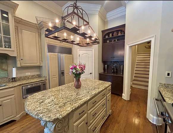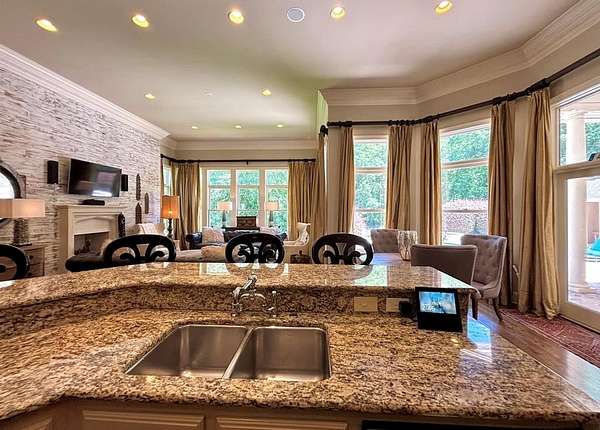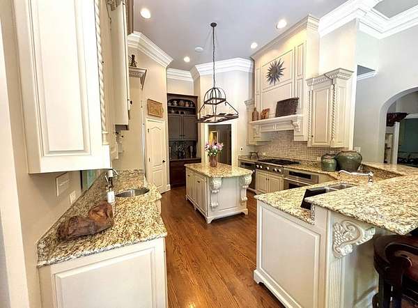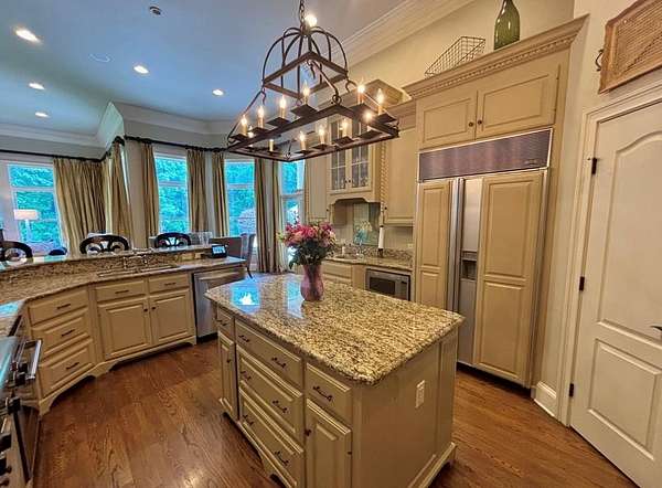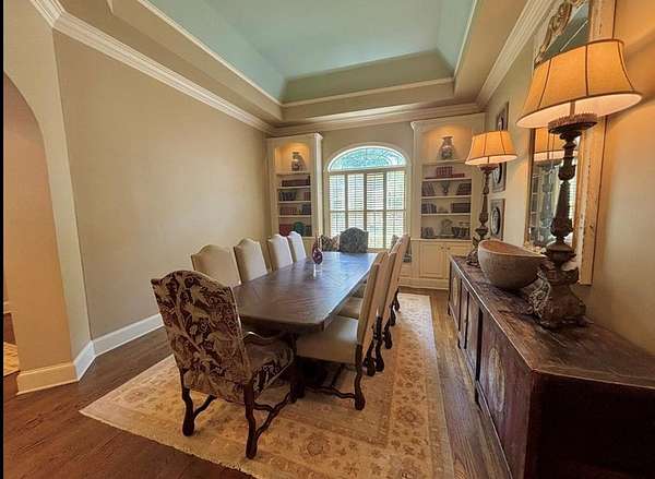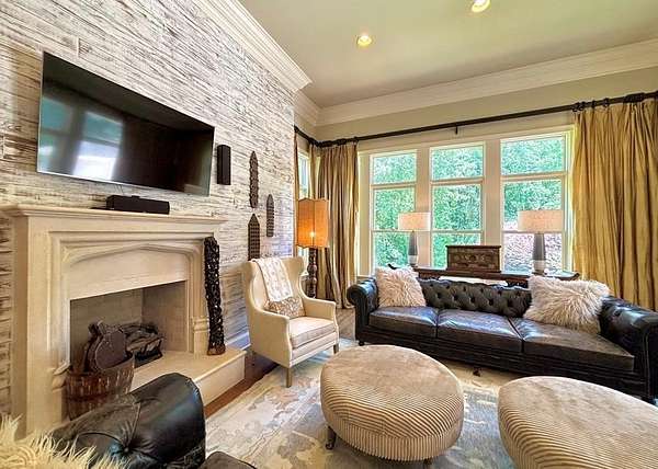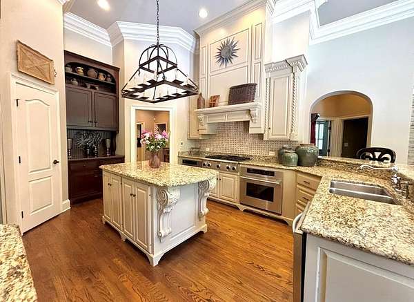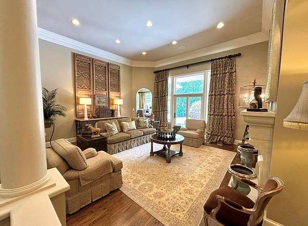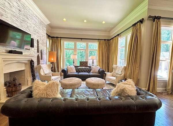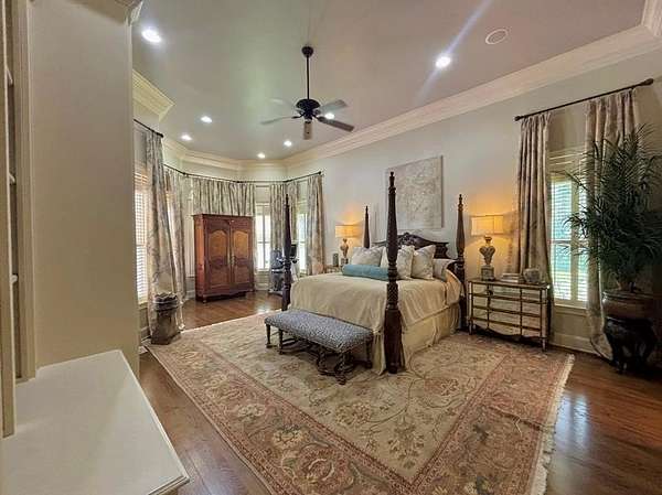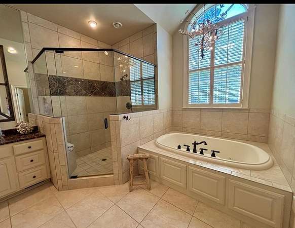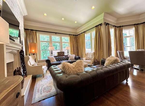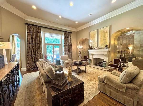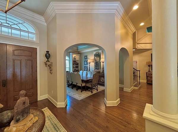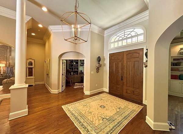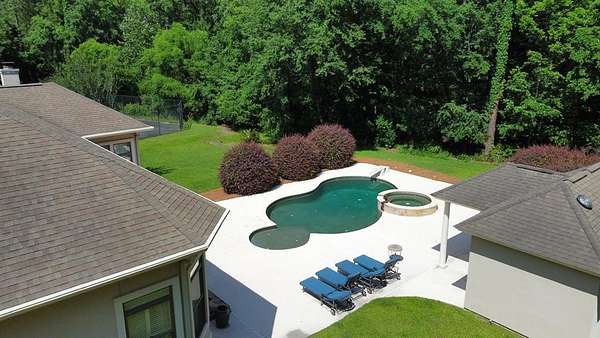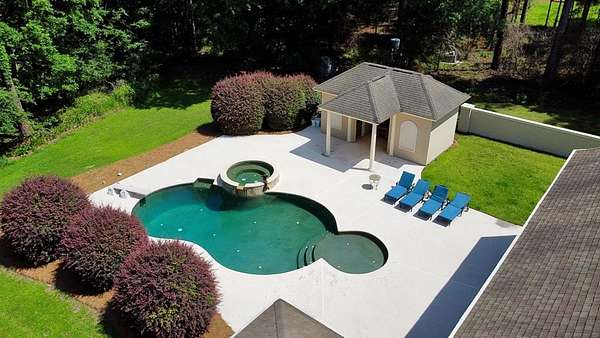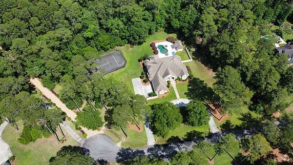 Located in the prestigious Long Pine Subdivision, this 5 bedroom 5.5 bath estate is a masterful blend of timeless elegance and modern luxury. A striking stucco facade, stone accents, and an architectural roof lend an inviting, enduring character to this architectural gem. This property is nestled on 3.14 acres with a circle drive leading to a meticulously designed motor court and a three car garage, ensuring plenty of parking. The interior finishes are a testament to exceptional craftsmanship, begining with the grand foyer with 14 ft ceilings which sets the luxurious tone. The main-level primary suite is a private sanctuary, complete with a sitting area, and over looks the pool. The primary bath includes dual closets and spa like shower and jacuzzi tub. Outside, the backyard is a private oasis with an inground pool with spill over spa, pool house, and a large tennis court making entertaining a breeze. Contact your agent today for a private tour in this sought after location.
