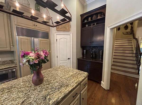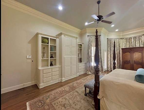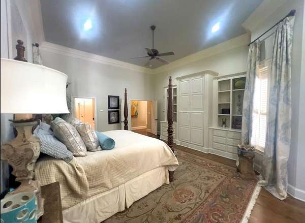 - Cable TV, Ceiling Fan(s), Fireplace-Gas, Intercom, Pantry, Walk-In Closet(s), Water Softener-Owned, Whirlpool Tub, Wood Floors