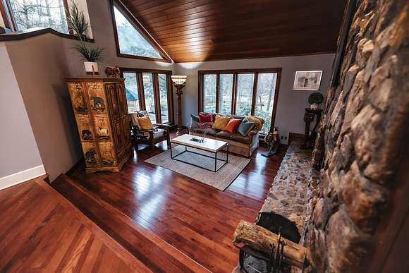 Welcome to Pierpont Place-Appalachian Mountain Living in Style. One of Kentucky's most unique homes. This contemporary home offers 3 bedrooms 3 1/2 baths. Retreat to the library-a grand space for entertaining or for quiet reflection. Library features a rolling ladder, wood burning fireplace and picture window view of the property. New Cherry Oak hardwood flooring throughout. Kitchen offers new custom-made cabinetry, Quartz countertops and stainless-steel appliances. 14,000-gallon Grecian pool. Sonos sound system. Two car garage. Wheelchair accessible. 5.33 Acre Estate 2.5 flat land. Secluded and private. New decks for outdoor entertaining.
