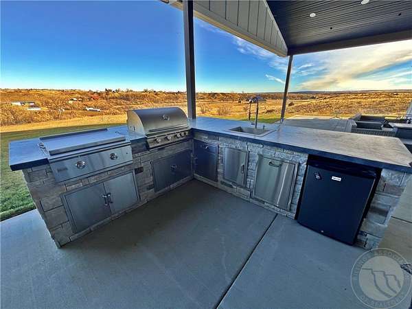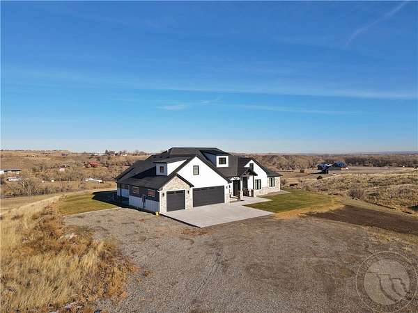 This Guzman Homes custom build sits on 7 acres with panoramic views of the Razor Creek + Yellowstone River valleys. The open-concept great room boasts a 12' tray ceiling, custom beams + stunning 88" electric fireplace. Cool, modern colors/finishes blend beautifully with warm, knotty alder cabinets + bright quartz counters. Entertain all your guests in this roomy kitchen with a 12' island. Fabulous split-bedroom floor plan- East wing: 3 beds + guest bath. West wing: Luxurious primary suite, bonus suite above garage, + spacious laundry room w/ half bath. Unwind in the gorgeously tiled main bathroom with a dramatic soaker tub, show-stopping glass-enclosed shower, + impressive walk-in closet. Enjoy the bountiful wildlife as you grill on the enormous covered patio with a one-of-a-kind outdoor kitchen. 25 min to the Heights. The subdivision has two private accesses to Yellowstone River.
