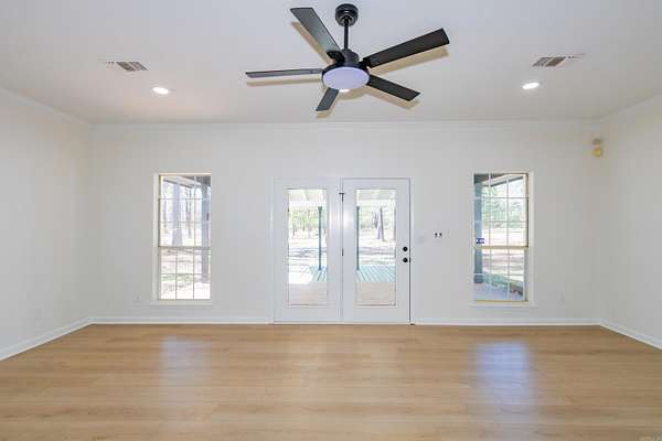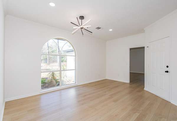 Located on a 4-acre plot, this enchanting home seamlessly blends the tranquility of country living with elegant character and practicality, positioned close to Pine Bluff's essential services. The interior, spanning about 2543 square feet, features 3 bedrooms, 2 full bathrooms, and an additional half bath, with plenty of storage space. The private driveway in a serene setting framed by mature trees. The home also boasts oversized family and dining rooms that welcome entertainment. The kitchen's generous proportions make it ideal for celebrations and gatherings. The expansive back-porch offers a perfect vantage point to enjoy the surroundings, ideal for relaxation and entertainment. The spacious primary bedroom, benefiting from a split-floor plan, can easily accommodate a sitting room and boasts an expansive walk-in closet and shower. The home meets all needs with Roomy.