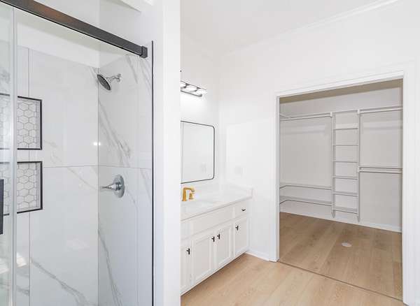 - Breakfast Bar, Ceiling Fan(s), Dryer Connection-Electric, Kit Counter-Quartz, Smoke Detector(s), Walk-In Closet(s), Walk-In Shower, Washer Connection, Water Heater-Electric