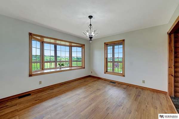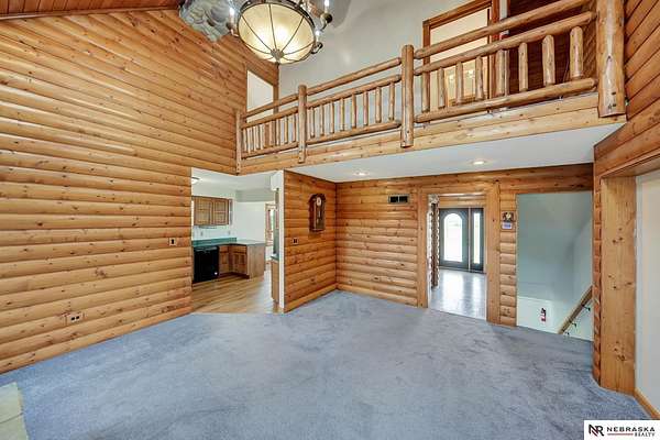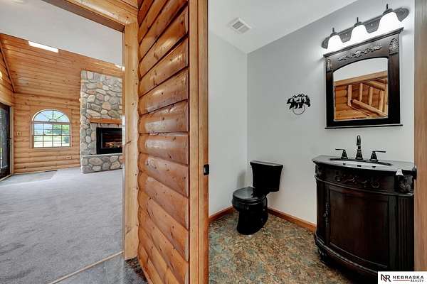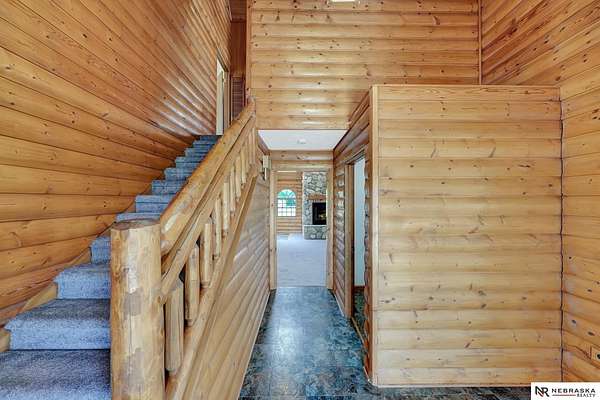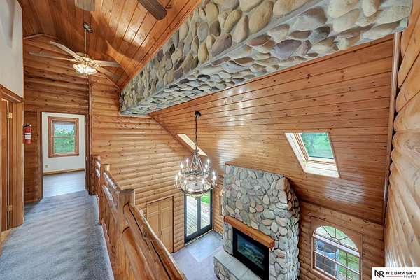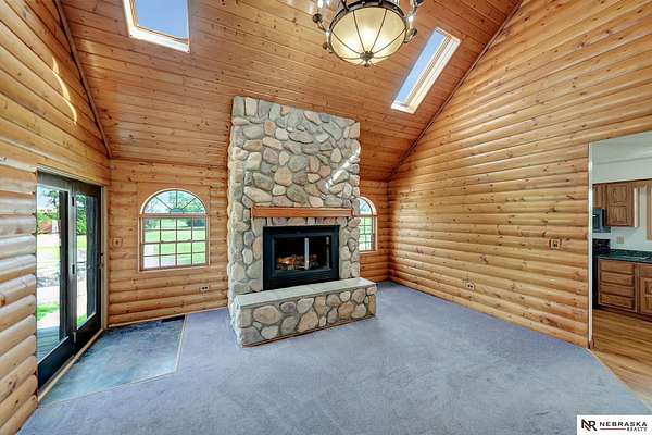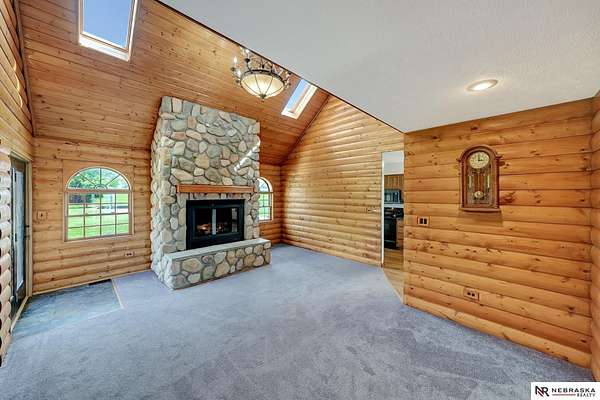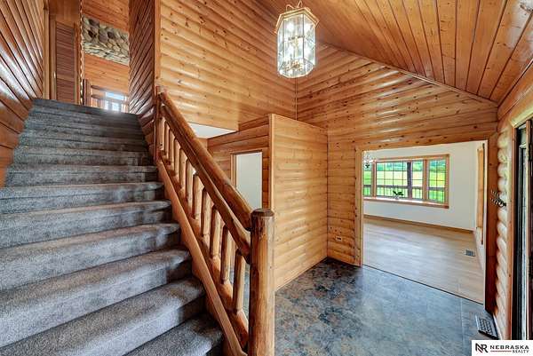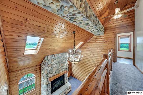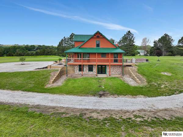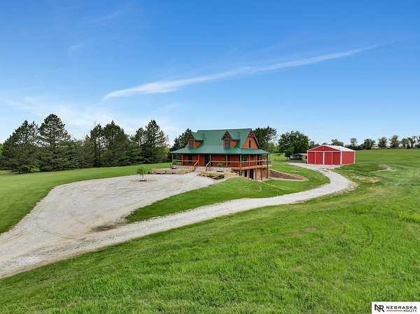 Contract Pending Escape to this stunning retreat just outside of Lincoln and 5 minutes away from Branched Oak Lake, nestled on over 21acres of peaceful countryside. This beautifully crafted 4-bedroom, 4-bathroom home blends rustic charm with modern comfort. Step into the living room centered around a grand fireplace, perfect for cozy nights in. The open kitchen and dining area provide plenty of room for family meals or entertaining guests. The main-floor primary suite offers privacy and convenience, while two additional bedrooms upstairs and one in the finished walkout basement provide flexible living options. Enjoy serene views from the covered wraparound porch with multiple entry points. A utility building sits out back with an attached carport for extra storage or hobbies. This is the perfect property for those who crave space, tranquility, and the warmth of cabin living, don't miss your chance to make it yours!