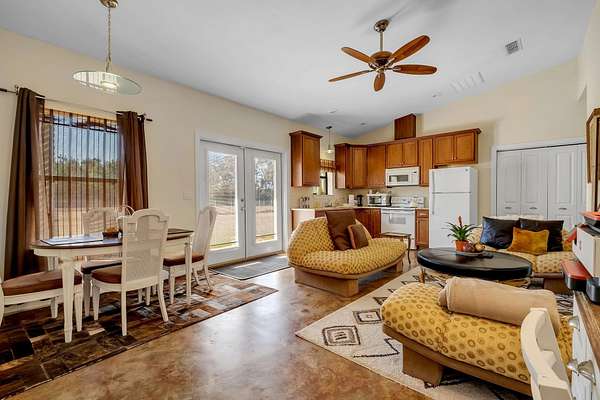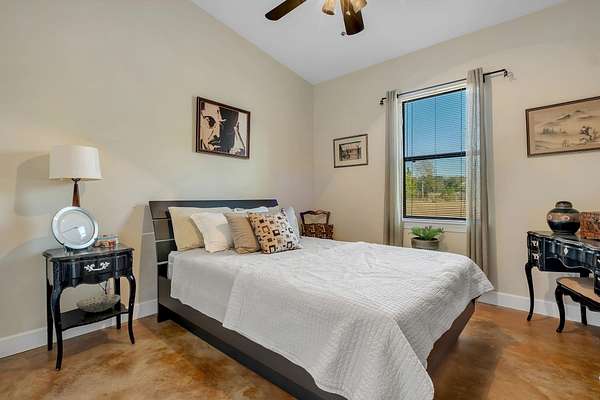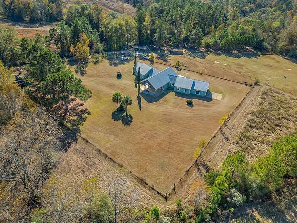 Private Luxury Estate on 5 Acres. Beautifully designed 3,560 SF residence PLUS a 624 SF heated and cooled garage, offering refined living and peaceful privacy. The home features 3BR/3BA, a dedicated office/study, two fireplaces, and a flowing layout ideal for both everyday living and entertaining. Enjoy your own private outdoor retreat with a pool and expansive grounds. Additional highlights include a 350 SF fitness studio and a private in-law/guest suite with full kitchen, living, and dining space-perfect for extended living or hosting guests. Fully fenced and supported by two private wells, the property also carries agricultural zoning, providing flexibility for future use. The home provides luxury, land, and lifestyle in one exceptional property.