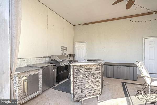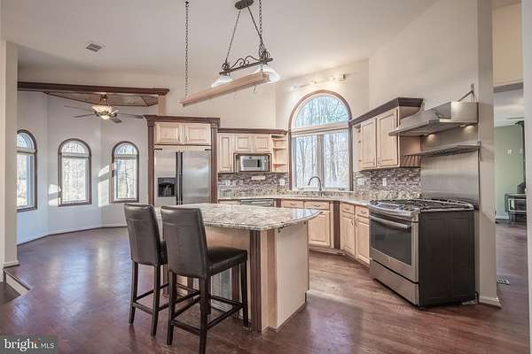 - Breakfast Area, Ceiling Fan(s), Dining Area, Eat-In Kitchen, Entry Level Bedroom, Formal/Separate Dining Room, Island Kitchen, Pantry, Upgraded Countertops, Window Treatments, Wood Stove