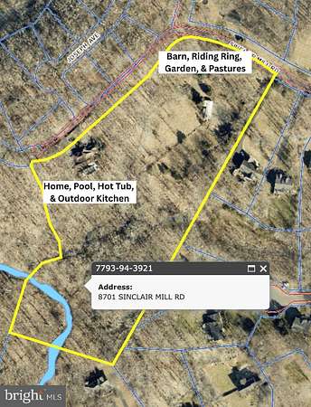 NEW PRICE & PICS! WORK IS COMPLETE! 3D tour was done before floors. 8701 Sinclair Mill Rd is tucked away on a quiet cul de sac in Manassas. An extraordinary estate property built in 2005 & set on 10 picturesque acres that blends elegant architecture with a resort inspired atmosphere. Soaring ceilings exceeding 12ft across 2 levels & a 20ft foyer with wrapping staircase, create a sense of openness & light, while thoughtful design elements throughout the home provide both grandeur & warmth. A 4 car garage, expansive outdoor living spaces, pool, hot tub, equestrian amenities, & scenic Long Branch stream flowing toward Lake Jackson /the Occoquan Reservoir are just a few of the standout features of this recently refreshed property. The peaceful Long Branch stream runs through the back of the property creating a serene landscape that changes with each season. Backing directly to Doves Landing (see documents), protected county parkland, offers an exceptional connection to nature rarely found in such a convenient NOVA location. Offering an equestrian aspect with riding ring, pastures, & a 3 stall barn, a pool & hot tub in the outdoor living area with outdoor kitchen, this home is like nothing else! Designed with entertaining & outdoor enjoyment in mind, this 6 bed 4 full & 2 half bath home shines as a year-round gathering place & an ideal summer retreat. The private pool / hot tub area & stunning outdoor living area create a resort like setting, complete with an outdoor kitchen & gas firepit. Perfect for relaxed evenings & weekend celebrations surrounded by tranquil views. From summer pool days to crisp fall evenings by the fire, the property naturally becomes the place everyone wants to be. 3 large living areas create the perfect space for generational entertainment. No need to worry during a storm, a whole home generator will help keep the party going! Equestrian & hobby enthusiasts will appreciate the beautifully redone three stall barn, open pastures, and riding ring, offering flexibility for horses, recreation, or a variety of lifestyle pursuits. Inside, inviting gathering spaces balance comfort & elegance. 3 gas fireplaces & a wood burning stove create cozy focal points throughout the home, while refreshed interior features complement the home's timeless character. The result is a residence that feels both revitalized & enduring. The breakfast nook sits like you are in a turret with its own vaulted wooden ceilings looking over the property. Sit & enjoy morning coffee or an evening beverage on the balcony off the dining area. 3 main level bedrooms one being a second master, make one level living a breeze. Upstairs is a Primary DREAM! Oversized bedroom with sitting area, MASSIVE bathroom with walk in dual head shower and jetted tub, & a closet bigger than some bedrooms! Completing the home is the lower level, with a wet bar / coffee bar, living area, & 2 bedrooms, this home just doesn't stop. Arrival is equally impressive via a gated driveway that enhances privacy while establishing a grand sense of entry. Extensive updates provide peace of mind & value, including a new roof, new plumbing, refreshed HVAC systems, ext improvements, fresh paint, updated fixtures, new 80 gal water heaters, radon rem sys, refreshed barn, & new peat installed in the septic system 8701 Sinclair Mill Rd presents a rare offering of acreage, water features, & parkland, within one remarkable private estate. More than simply a residence, this property offers a unique opportunity to own a private retreat where everyday living feels like a getaway. Designed equally for peaceful everyday living, unforgettable gatherings & every season brings new ways to enjoy the land, water, & home. It Despite its tranquil estate setting, the expansive property provides space, privacy, & versatility rarely available close to major commuter routes. 12 miles from I95, 8.6 miles from 28, 13 miles from I66 allowing for accessibility with space & serenity.