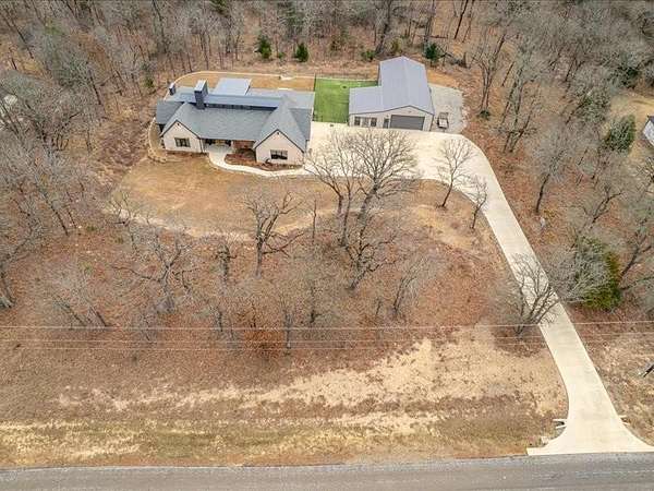 INCREDIBLE CUSTOM Contemporary 2,850sf one-story built in 2024 located on just short of 6 ACRE LOT fully treed with hardwoods and very private. House alone has 3 Bedrooms, 3 Full Baths, 3 car attached, Sunroom overlooking property, 2 Fireplaces, Chef's Kitchen, Luxury Custom Pantry, upscale master closet, Hot Tub with a view, and so much more! IN ADDITION, in a separate building, ADD 580sf finished out Flex space with bathroom. Total SF LIVING SPACE equals to 3,430sf. Flex space is attached to 1,708sf Workshop. All beautifully designed with contemporary details. SEE DETAIL AMENITIES LISTED IN SUPPLEMENTS. Safari Waters Ranch is an established gated community with free roaming zebra, 4 exotic deer and wildlife galore. COMMUNITY INCLUDES access to 3 small lakes for boating, kayaking, fishing and more! If you desire to be social, community offers pickle ball, 42, Mah Jong, dinner groups and much more as well. Make this home a weekend getaway or next step to luxury living. Located 1 hour and 20 min from Downtown Dallas. 40min from Tyler. Wake up each day to serene sunrises and sip a beverage while ending the day with beautiful sunsets. Run...don't walk to preview this beautiful property and all that it has to offer.