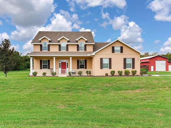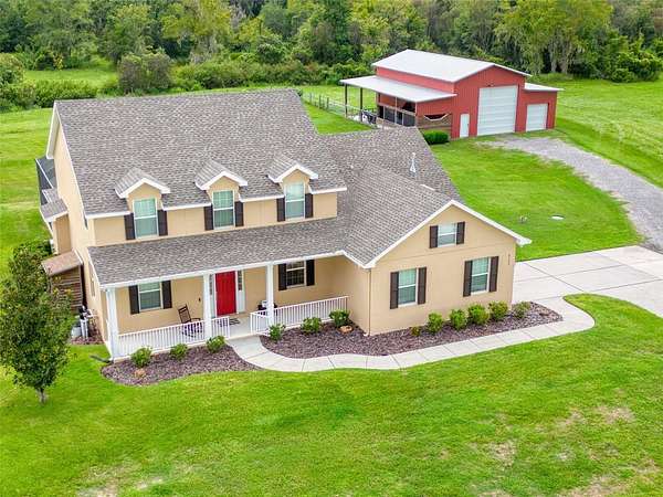 Welcome Home to Your Classic Country Manor on 5+ Acres with Pool and Barn! Discover the perfect balance of rural charm and modern convenience in this gated equestrian community, where each custom home enjoys its own private acreage. Tucked at the end of a quiet cul-de-sac, this traditional residence offers inviting spaces throughout--a cozy front porch, dedicated home office, formal dining room, sunny breakfast nook, and a living room with an elegant electric fireplace. The main-level primary suite provides comfort and privacy, while upstairs you'll find the perfect kid's escape with three additional bedrooms, two full baths, and a spacious bonus room ideal for play or study. Outdoors, a 48' x 48' barn features two horse stalls, an enclosed area for boat or RV storage, plus a separate storage room. The property blends lush pasture with mature trees, creating both privacy and plenty of room for animals or your own homestead. Enjoy country living with the ease of a gated neighborhood and community living--your serene retreat awaits!