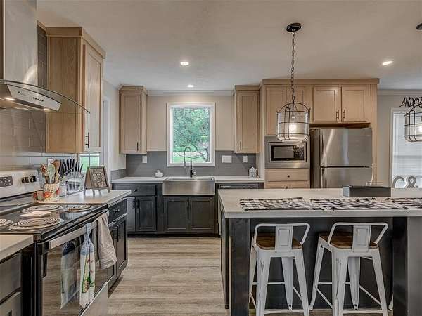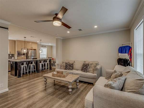 Inside, the home features 3 bed, 2 bath, a bright and open layout with a mix of vinyl and carpet flooring throughout. The kitchen is a true standout, showcasing a large center island, stainless steel appliances, and abundant cabinet and countertop space--ideal for cooking, hosting, or everyday living.
