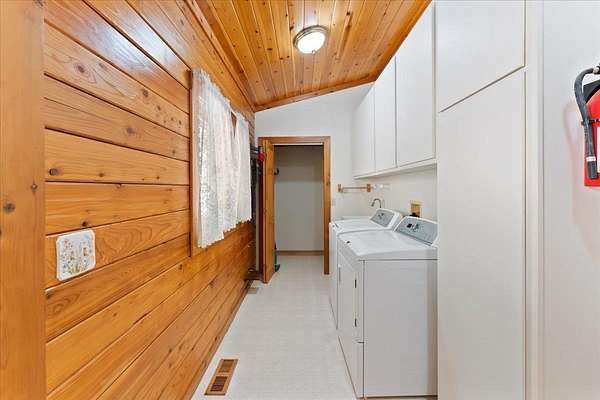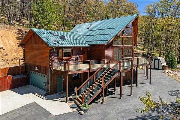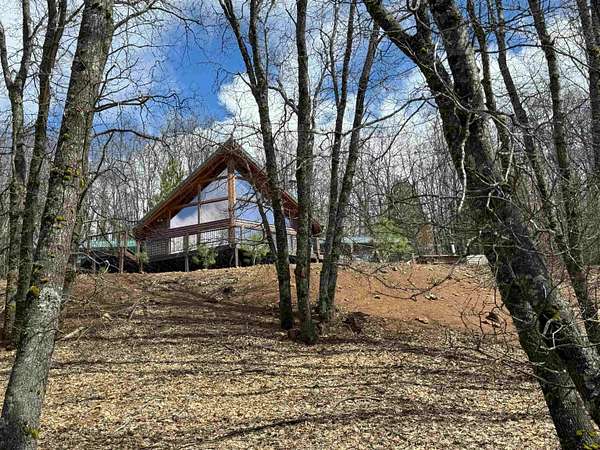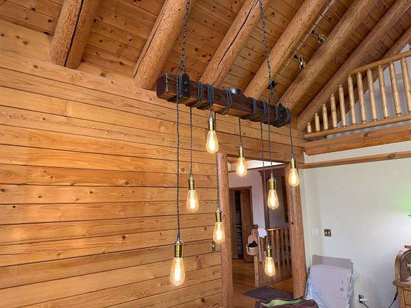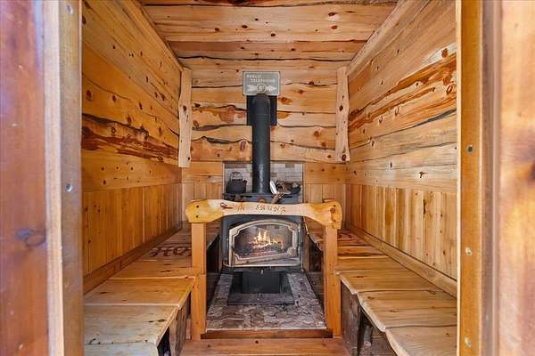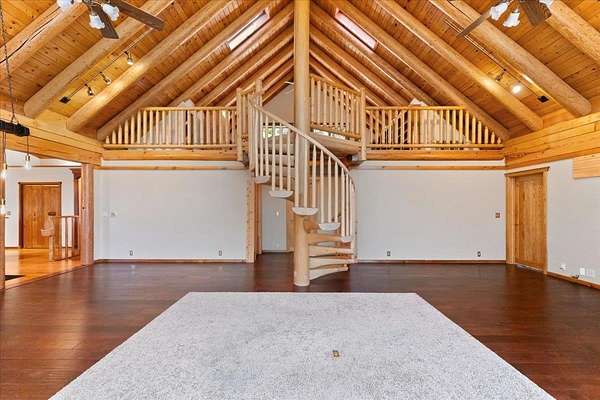 Exceptional Log Home Retreat nestled in the heart of a sun-drenched, wooded 5-acre parcel filled w/ mature oak, dogwood, & wildlife. This stunning 3-bed, 3-bath log home offers over 2,500 sq. ft. of thoughtfully designed living space-just a short stroll from the serene Hammond Pond. Step inside to discover a warm & inviting interior featuring a spacious living room w/ soaring ceilings, panoramic windows, and a striking spiral staircase that leads to a loft lined with custom built-in bookcases--complete with hidden storage compartments for added intrigue and functionality. The primary suite offers direct access to a wood-fired sauna, creating a private spa-like experience. Entertain with ease on the expansive deck, perfectly positioned to capture breathtaking views of the Eddies. Downstairs, a two-car garage opens into a finished bonus room equipped w/ a built-in Murphy bed--ideal for guests or multi-purpose use. Additional amenities include a dedicated wood room w/ wood waiter, workshop, & a second oversized workshop at the opposite end of the driveway--perfect for storing large equipment, vehicles or toys. Countless thoughtful details & unique features throughout! It's a Must See!