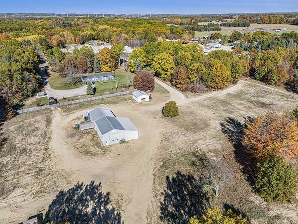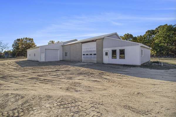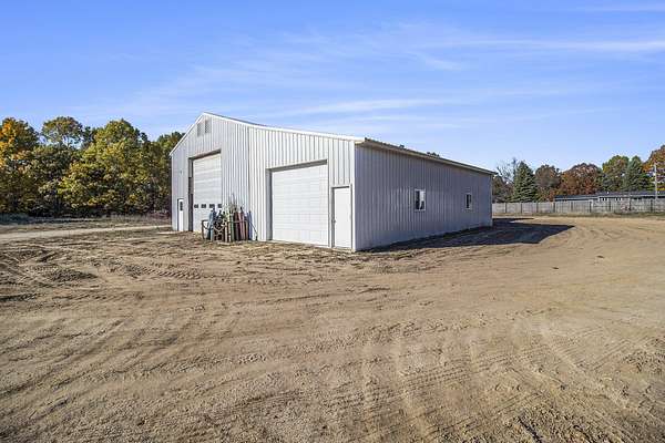 This property presents a unique opportunity with a large pole barn/shop in Weare Township, featuring a well, septic, wood-burning heating system, an office with a kitchenette, a bathroom, and an extra garage for storage. With frontage on Oceana Drive and over 9 acres of land, the possibilities for development, business, or personal use are endless.
