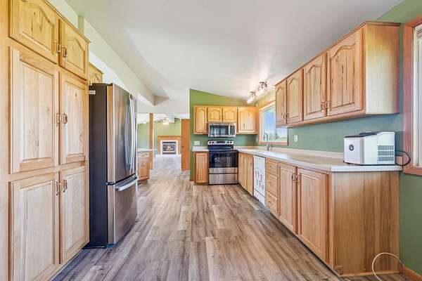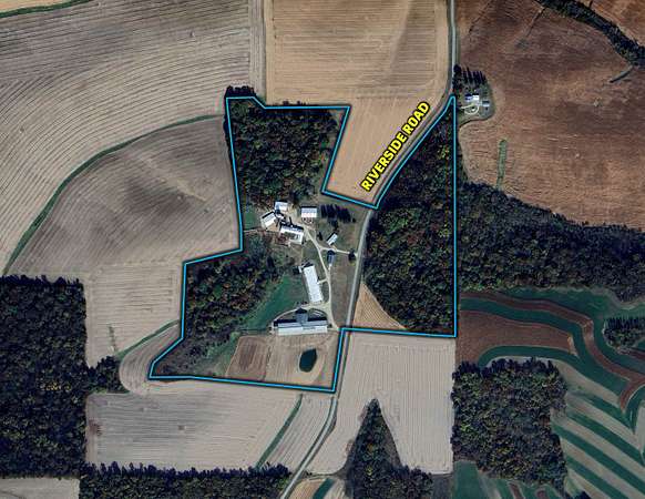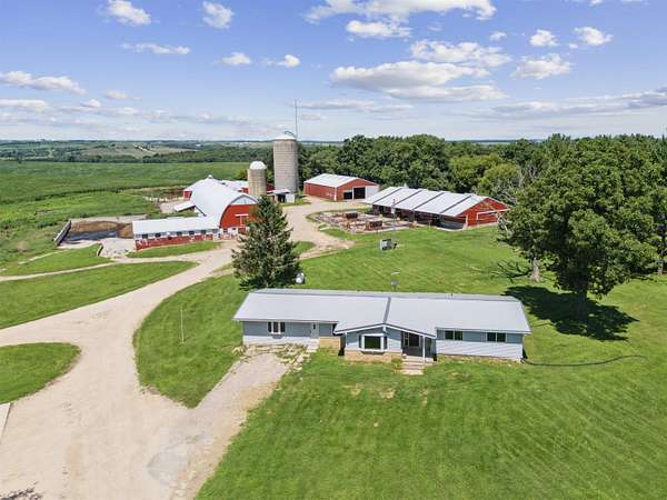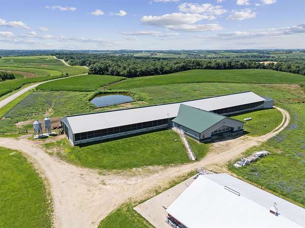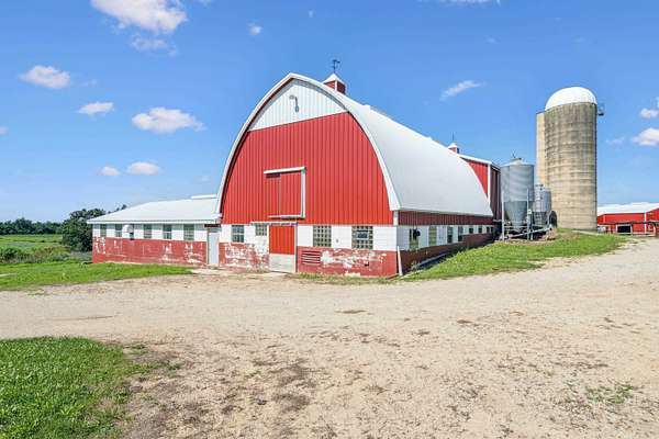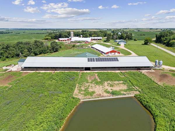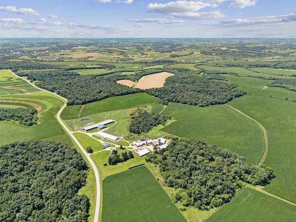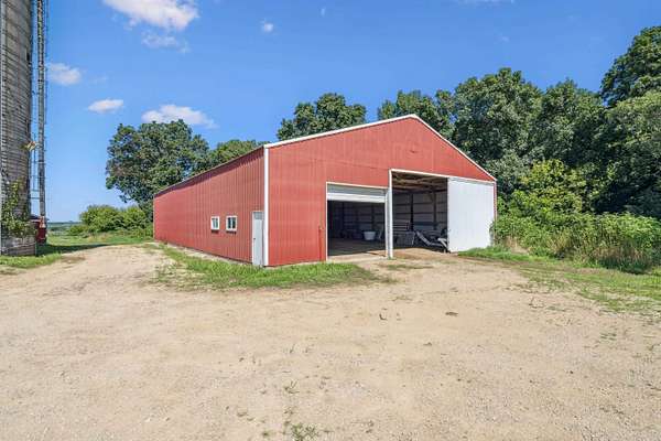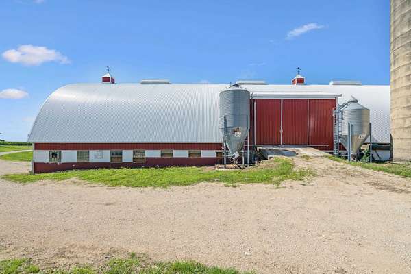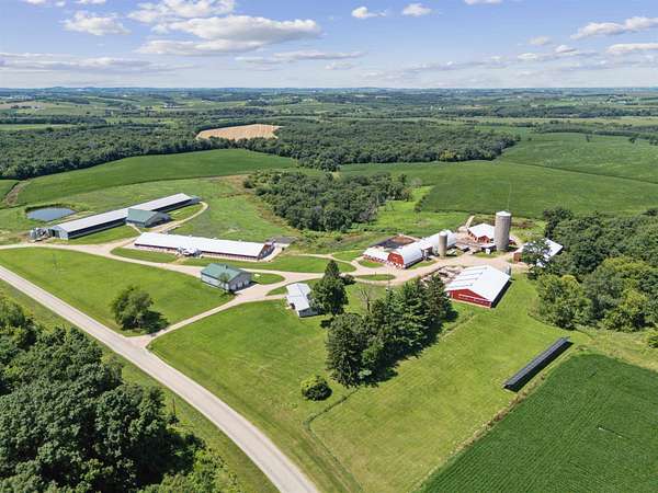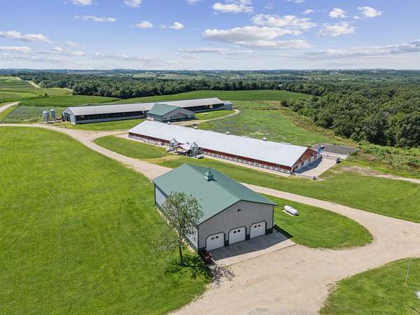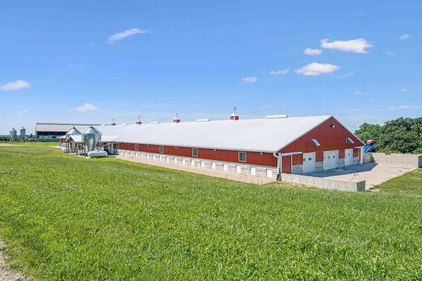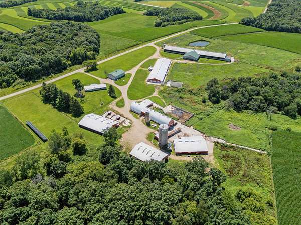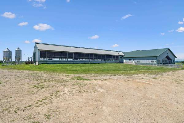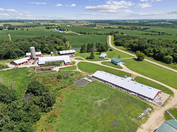 Check out this well-improved 63.07-acre m/l property just outside Darlington, Wisconsin, offering a rare mix of residential comfort, livestock-ready infrastructure, and long-term versatility. About 20 acres m/l lie east of Riverside Road, consisting mostly of mature timber with 1.58 acres m/l tillable--ideal for recreation, hunting, or a future build site. The balance lies west of the road and features a highly functional farmstead anchored by a clean ranch-style home, a heated 40' x 60' shop, and six additional outbuildings designed for livestock, storage, and feed operations. The residence includes 1,852 finished square feet, including a converted garage, with luxury vinyl plank flooring, hickory cabinetry, stainless appliances, a spacious open living area, and a gas fireplace. Served by private well and septic, the home sits over a poured concrete basement with updated utilities including a 200-amp panel and a 2016 Carrier furnace. Modern windows, a metal roof, and vinyl siding offer long-term durability. A solar array of 30 ground-mounted and 18 rooftop panels offsets electricity costs across the property. The outbuildings offer turnkey livestock functionality. Highlights include a 40' x 60' heated shop, 50' x 100' barn with steer pens and waterers, a 54' x 85' pole shed with power, and a 60' x 90' barn connected to a feedlot with fans, chutes, and manure pit access. A 34' x 160' barn houses a "Calf Expert" auto feeder, and a 68' x 250' former sow barn includes an alley scraper and heaters. A 76' x 60' dairy parlor with in-floor heat, office, and breakroom connects to a 70' x 340' feedlot with 7 pens, automated feeding, 15 fans, and curtain ventilation. Multiple wells, Ritchie waterers, bulk bins, silos, LP tanks, and heated utility rooms round out this versatile, well-equipped operation--ideal for calves, steers, or diversified livestock production.