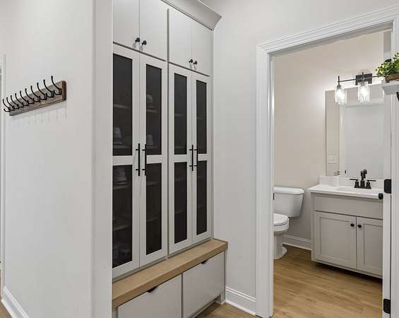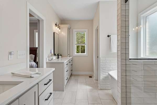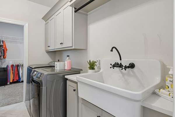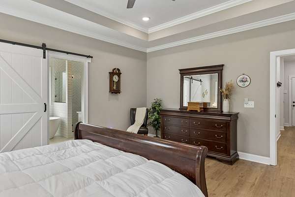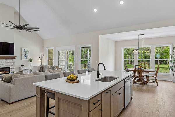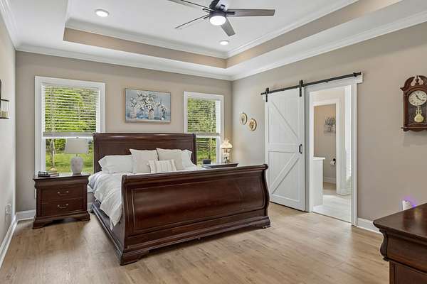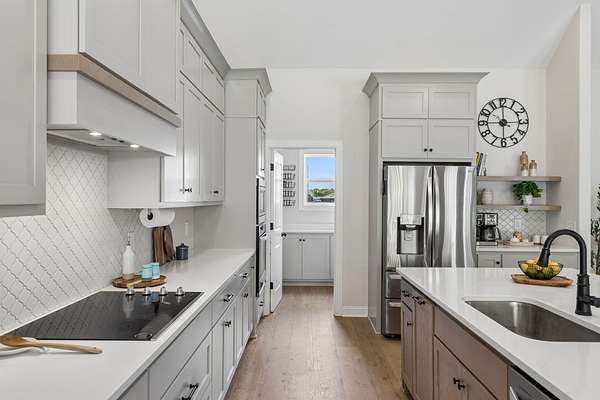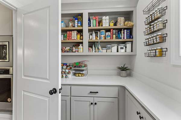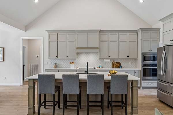 The home is impressive from the moment you drive up, and the interior is stunning. The vaulted ceilings and open floorplan create a grand, welcoming living space. The chef’s kitchen is exceptional, featuring a large island, high-end appliances, beautiful finishes, and a bright walk-in pantry complete with a refrigerator and extensive cabinetry.