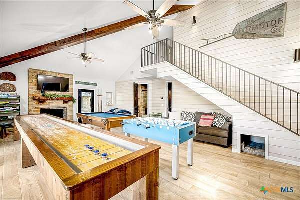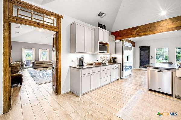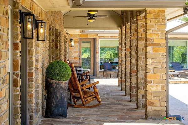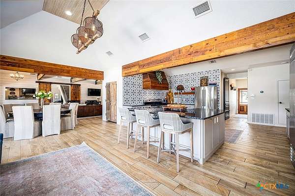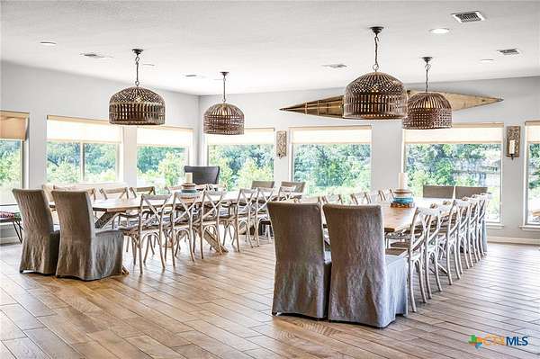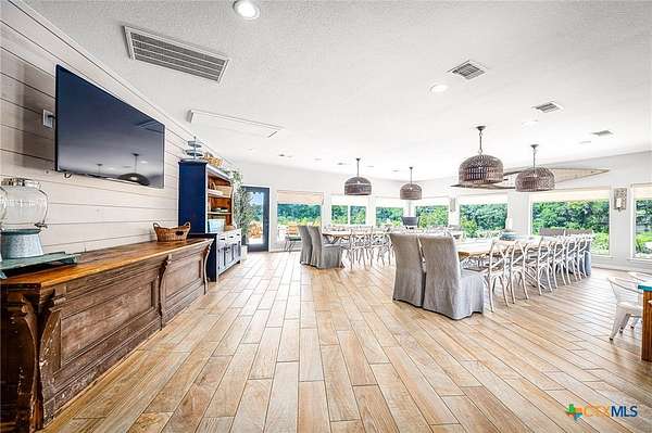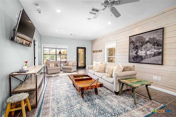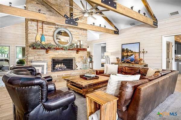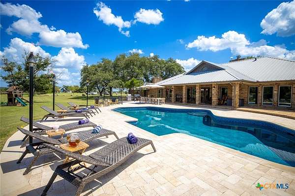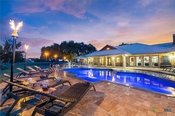 Welcome to Blanco Valley Lodge! Located minutes from Blanco, this exquisite Blanco River property sits on 6 AC and has over 370' of pristine Blanco River frontage. Travel down the tree lined drive way to the main house which features 5780 square feet of completely remodeled space with 4 bedrooms, 4 full baths, 3 fireplaces, a game room, and a huge extra dining area perfect for entertaining friends and family. The kitchen includes a large commercial refrigerator as well as two ranges and two pantries for those long holiday weekends on the river. Long Leaf Pine wrapped beams are a focal point in the great room with its grand rock fireplace and plenty of room for relaxing. Step outside to the huge Travertine patio with gas Tiki Torches and relax in the pool or spa and afterwards enjoy the gas fire pit while taking in the views. There's also a 1200 sqft 2 bed, 2 bath guest house for handling overflow of guests along with a 3 car garage for extra parking and storage. Plenty of mature oaks and additional outdoor amenities make this one of a kind property a place you'll never want to leave! Call today for a personal tour!