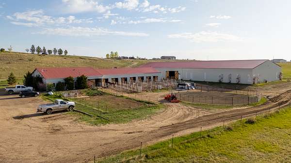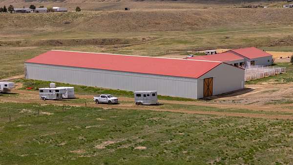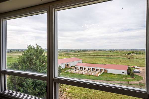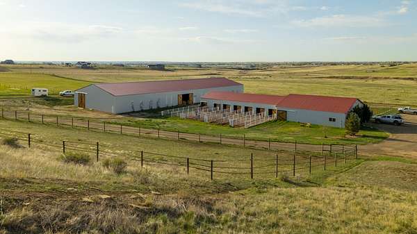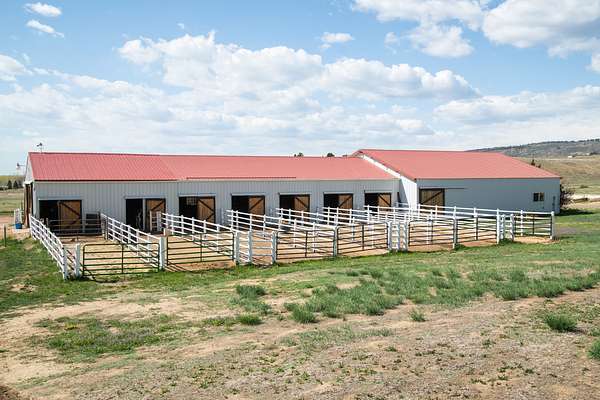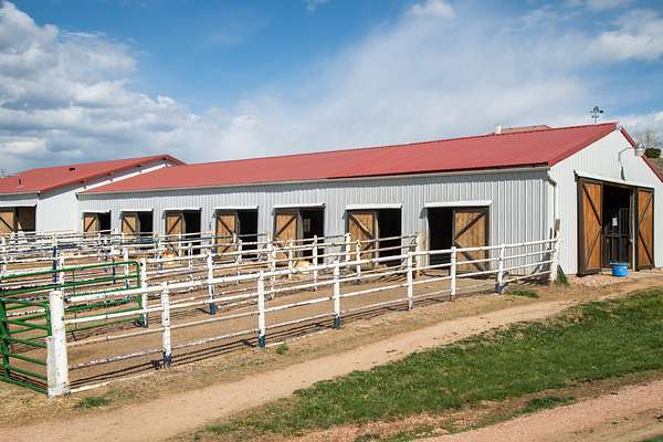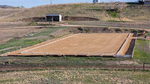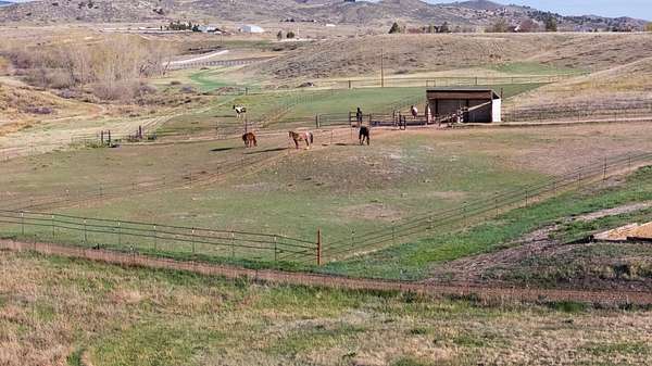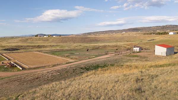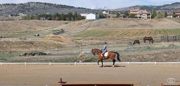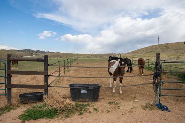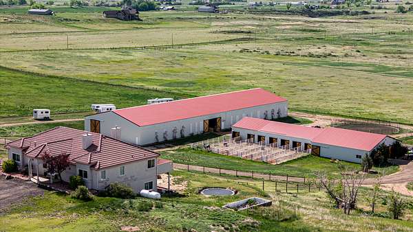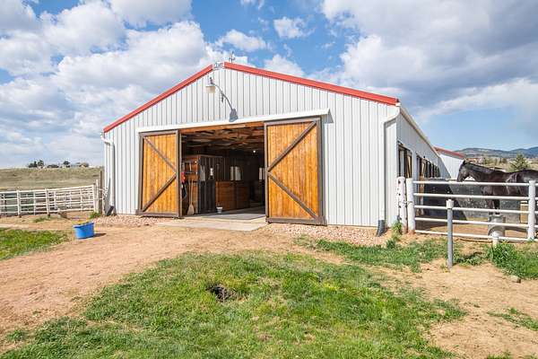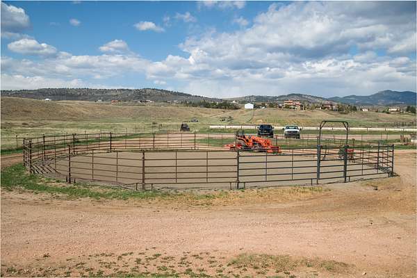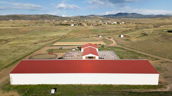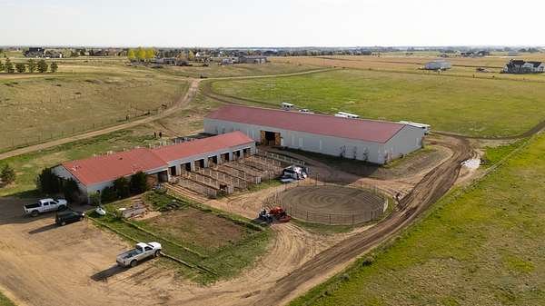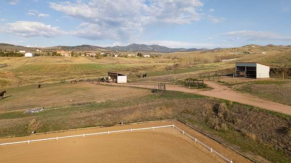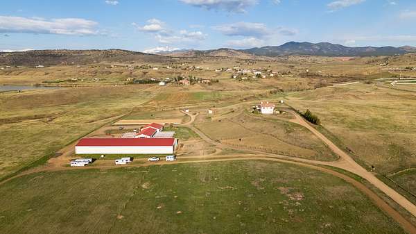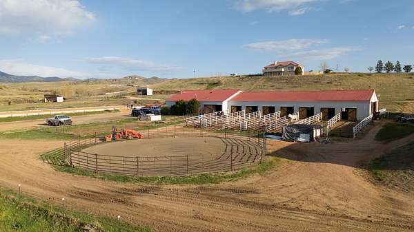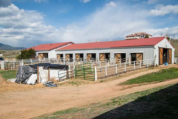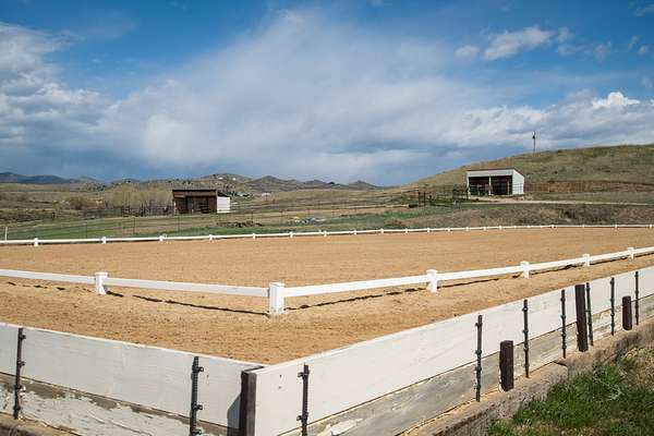 Horse Castle Ranch sets the bar on 29 acres in the Front Range. Indoor and outdoor 20x60 arenas, a mile long galloping track, round pen, barns and a barn apartment join a custom 4 bedroom home with mountain views. Current operations are led by Grand Prix trainer Verena Diaz, available to stay if desired. Minutes to Berthoud and Carter Lake. Luxury, function and scale.