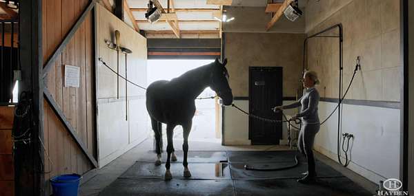 Concrete-floored stalls with premium rubber mats and wood shaving bedding