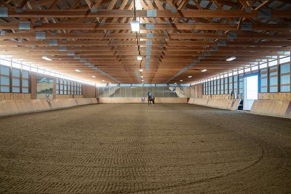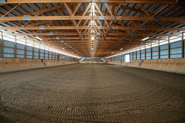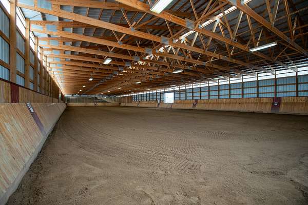 Indoor Arena (20m x 60m): Premier Equestrian footing, slanted kick walls, sloped feedback mirrors, 16? ceilings, 14'x16' equipment access door