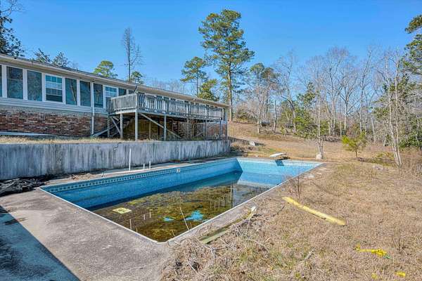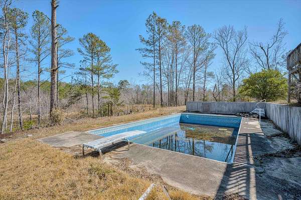 Investor opportunity on nearly 3 acres in Grovetown with no HOA. This single-story home offers significant value-add potential, with a new roof already installed and interior demolition underway. It is currently configured as a 4-bedroom, 2-bathroom home with a single-car garage, outbuilding, and an in-ground pool. This fixer-upper is being sold as-is, and updates will be needed to restore the home to its full potential, including repairs to the foundation and pool. The large lot and existing structures provide multiple options for renovation, resale, or long-term hold, offering an excellent opportunity for investors or buyers seeking to customize a home on acreage. Located at the end of a dirt road on a sloped lot with a wooded area and pond behind, the property offers privacy while remaining close to Grovetown's amenities. With quick access to major roads, the home is a short drive to Fort Gordon, John Deere, Amazon, downtown Augusta, and other major employers. Buyer to verify square footage.