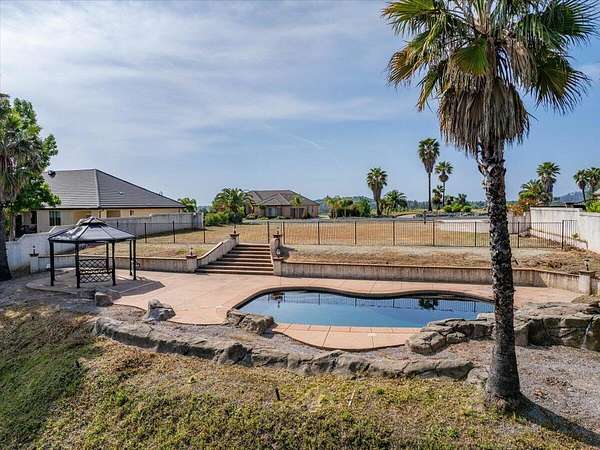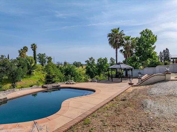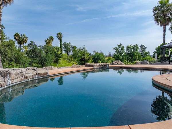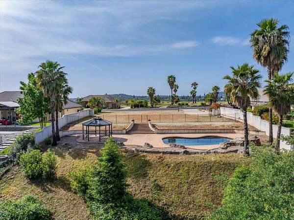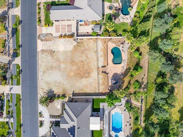 Rare picturesque view lot with resort-style pool in one of Redding's few elite, architect designed gated communities, Stanford Hills. This lot backs to peaceful greenbelt with wide open views and already features a beautiful Guiton's pool with waterfall features and fully fenced for safety. Concrete decking, mature palms, redwoods, and a sleek mix of stucco and wrought iron along perimeter give the space a high end, finished feel. Groundwork is done. Graded, compacted, and all underground utilities are at lot line. City of Redding services and direct access to Sacramento River Trail add even more value. A previous home on property was approx. 2,964 sq ft with an 836 sq ft garage and 4 bedrooms, which may qualify for school and impact fee credits. Professionally designed house plans are ready to go and can be included with right offer.