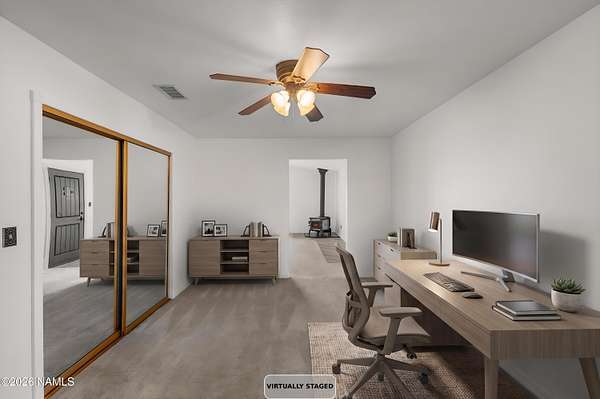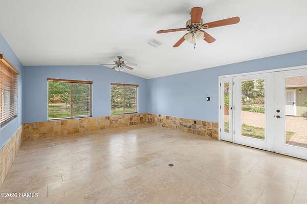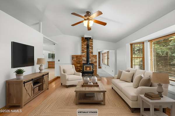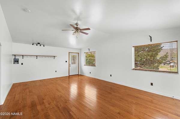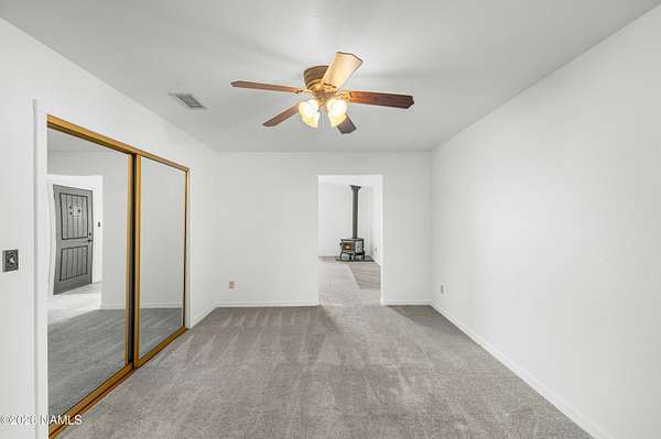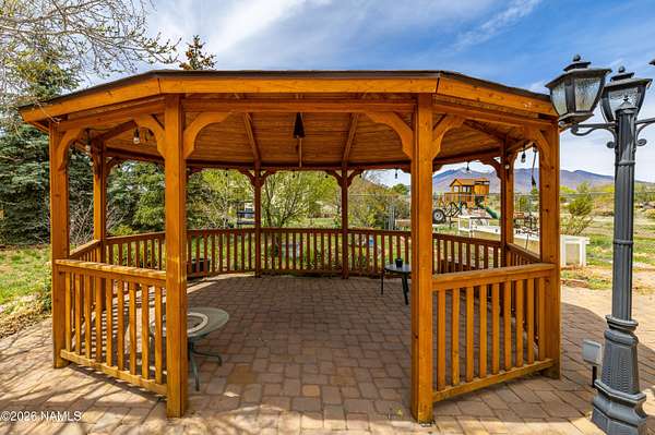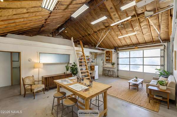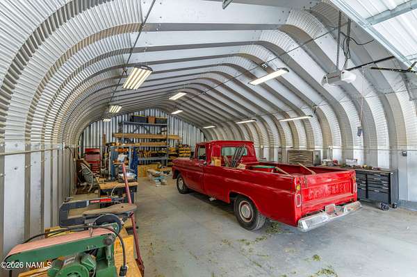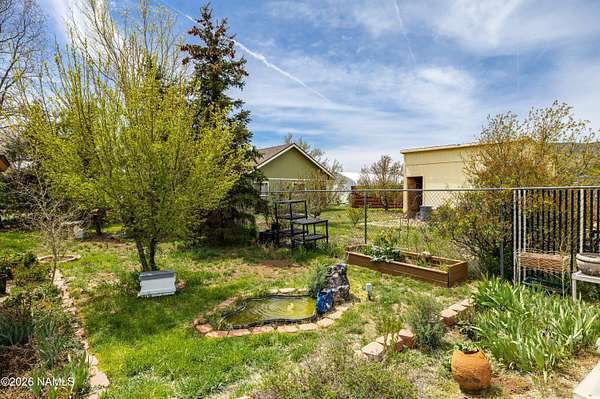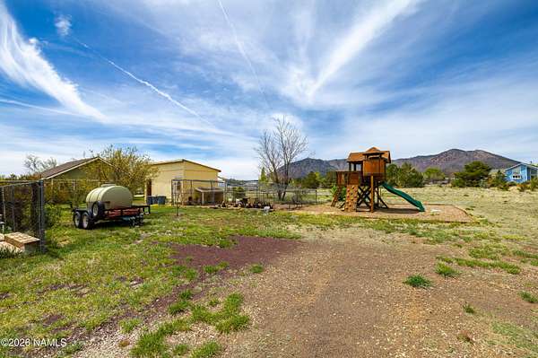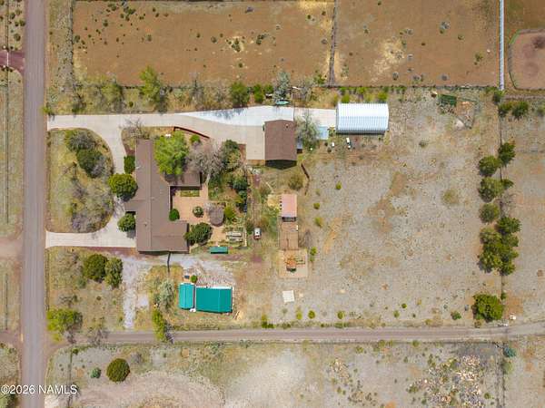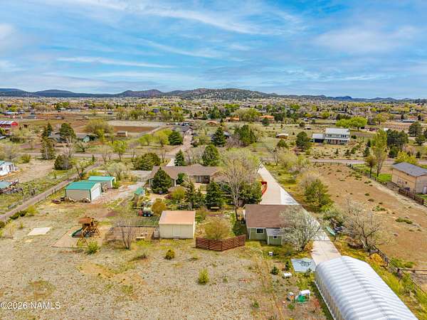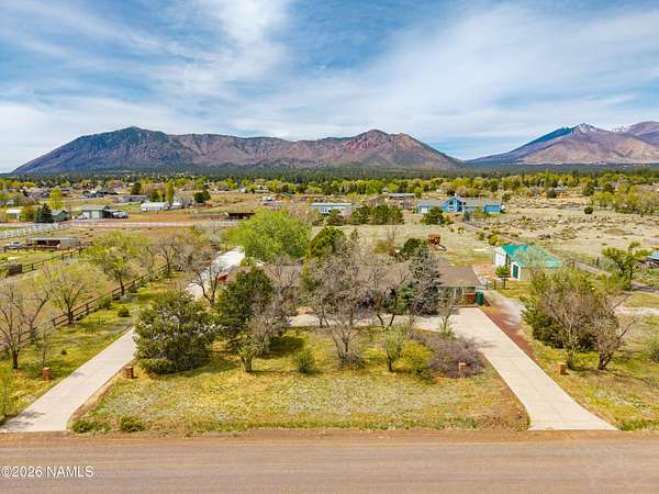 Set on over 2 acres with breathtaking views of the San Francisco Peaks, this versatile countryside property offers space, flexibility, and is a true rural retreat with residential acreage. The main home features 4 bedrooms and 2 bathrooms with potential for a 5th bedroom off the primary suite, two living areas, abundant bonus spaces, and fresh interior paint throughout. A separate exterior workshop includes a bedroom, half bath, and wood-fire stove. It has previously been lived in and offers potential for an ADU. The property also features multiple outbuildings, ample storage, established fruit trees, a garden, and a chicken coop -perfect for enjoying Flagstaff's rural charm while taking in stunning Peak views. Internal hookup for hot tub in large room off primary suite. Outbuilding Measurements (personal items not to convey - will be removed by close of escrow): #1 Garage: 1125 Square Feet #2 Garage: 1100 Square Feet #3: 440 Square Feet #4: 264 Square Feet