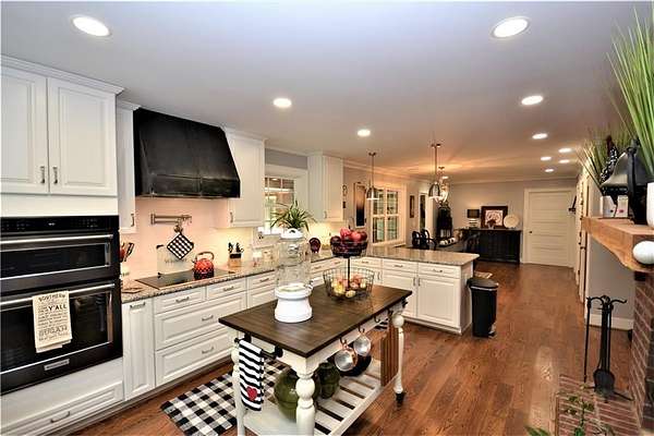 Wow, the attention to detail on this sprawling ranch remodel and expansion is breathtaking! The original home built in the 30's was stripped down to the framing and rebuilt around the heart of the home, the kitchen! Anchored by a massive two-sided fireplace, the kitchen is the main gathering place to the home; holidays in this space will create memories for generations. Gleaming white custom cabinetry, glistening granite counters, farmhouse sink, one of a kind vent hood, two pantries all open to the roomy dining area! On the other side of the massive masonry fireplace is the cozy family room, ideal for family gathering or relaxing around with incredible fireplace. A study off the family room would make a great home office or the owner would consider adding a closet for it to be a 3rd bedroom. On the other end of this home is an enormous guestroom with an adjoining full bathroom. The long hallway off the dining room leads to the new Owner's Suite which is a whole new wing added to the original home. Rarely is a laundry room a highlight to a home but this one is incredible. Plenty of storage, custom cabinetry and granite, built in ironing board and pass-through laundry door to the master closet, saves time and steps! The master is a true private oasis. The brick fireplace features a mantle hewn from a black walnut tree that was cut on site of the original homeplace. Enter the master bath with separate vanities, and incredible walk-in tile shower, with niches, bench and dual shower heads.The master closet is large enough to be an extra bedroom! If you ever to decide to actually go outside, the layout of the home forms a courtyard feel. The back porch and dining area are ideal for moving a meal or party outside. The porch is accessible from the dining area or the master and runs the entire length and width of the home. At the end of the covered porch is the attached two car garage...again where no detail was missed or expense spared. The brick fireplace in the master forms one of the interior walls and was built to accommodate a woodburning fireplace in the spacy garage. All of this situated on a gorgeous almost 5 acre tract with mature hardwoods all around! Home has a 400 amp electrical service installed, sufficient to power a future shop or even an additional home.