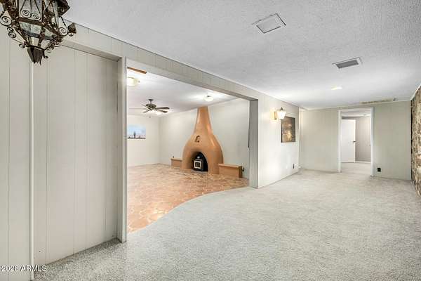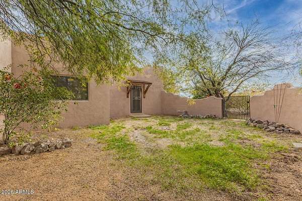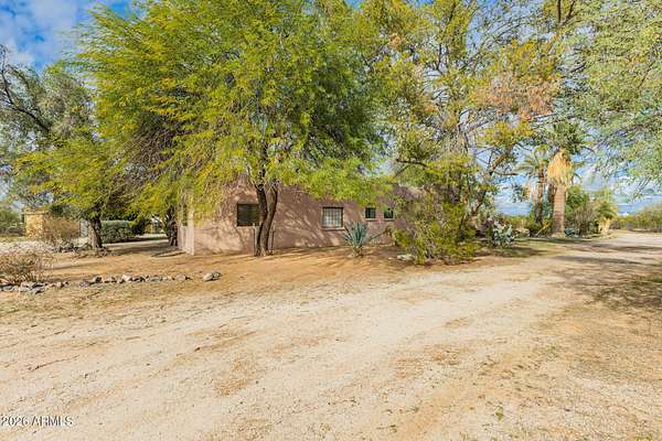 Stylish Sonoran-style home set on 5 acres, offering timeless Southwest character and exceptional privacy. Custom tile flooring flows throughout, highlighted by classic Saltillo tile and a striking beehive fireplace that anchors the living space. Inviting backyard and side courtyards create peaceful, private retreats--perfect for relaxing or entertaining. The property features mature desert landscaping with citrus trees, a circular driveway, multiple storage sheds, and ample covered parking. A rare hidden gem offering beauty, tranquility, and room to enjoy the Sonoran lifestyle.