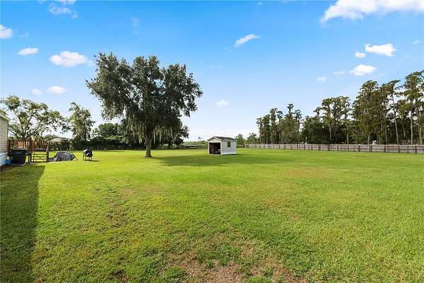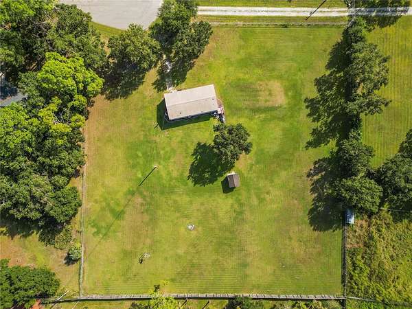 Under contract-accepting backup offers. Take a look at this 3 bedroom 2 bathroom home sitting on close to 2 acres of HIGH and DRY land with NO HOA! ROOF 2018! This property is fully fenced in for your privacy. Inside, you'll find a spacious living room with vaulted ceilings that leads into your open kitchen and dining area. The kitchen features plenty of cabinet and countertop space as well as a breakfast bar for those quick morning meals. The primary bedroom offers plenty of space and features an en suite bathroom with a single sink vanity, stand up shower and walk-in closet, the en suite also provides access to your inside laundry room. The remaining two bedrooms are generously sized, each with their own walk-in closet and share the main hall bathroom featuring a single sink vanity and tub/shower combo. Outside, you'll find a storage shed and basketball goal along with plenty of beautiful land to enjoy! This home has so much to offer. Schedule your private showing today!