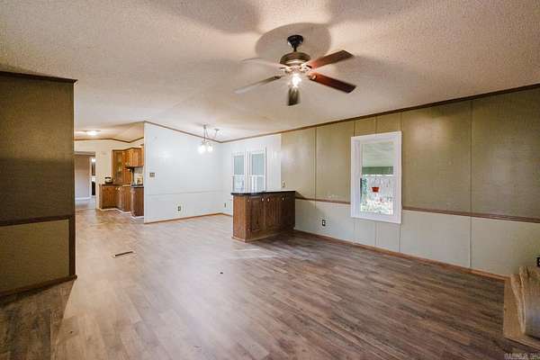 Discover peaceful country living in a prime Bryant location on 1.77 acres! This 3 bed, 2 bath manufactured home on a permanent foundation offers space, privacy, and fantastic extras. Property includes a 16x24 shop building with wood-burning stove, electrical, a large loft, and a covered hanger--perfect for projects or storage--plus a 12x24 utility building and a stock pond great for fishing! Enjoy multiple outdoor living spaces with a covered front deck, large covered back patio, and a 10x14 sunroom for year-round enjoyment.Step inside to an inviting open floor plan with new LVP flooring (no carpet!), abundant natural light, and a spacious living room open to the dining area and kitchen. Kitchen features a gas stove, ample cabinets and counter space, built-in dinette, and double sinks with sprayer. Split primary suite offers a large walk-in closet, double sinks, and a linen closet. Laundry room connects to the sunroom with access to the covered back porch. Property also includes a tornado shelter and sits on a quiet dead-end road with new construction and growth coming to the area. In the sought-after Bryant School District - Springhill, Bethel, Bryant Jr High & High School!