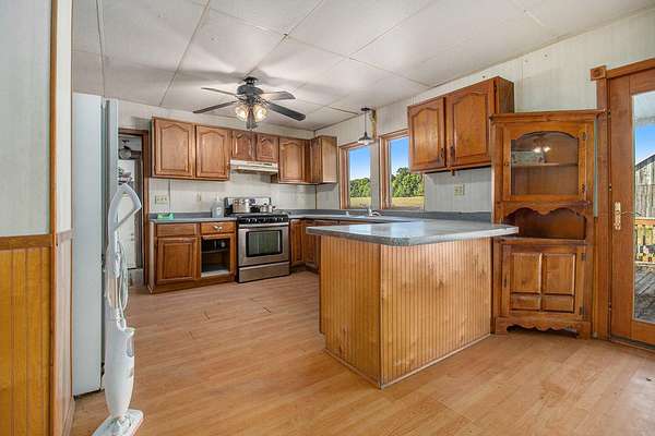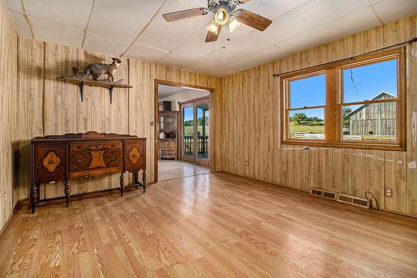 Est $1,644/moIf you are looking for space inside and out. This country home could be the one. Featuring 5 bedrooms, 1.5 baths, totaling over 1,400sq ft of living space, an attached garage and basement with both propane and wood heat options. The 40 acres consists of 30 +/- acres of tillable ground (asparagus and about 5 acres of hay).