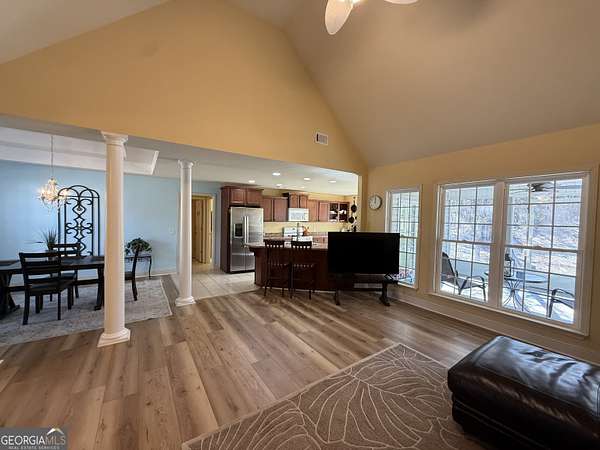 Welcome to your private retreat in the heart of Lizella. Tucked away on a generous 2.3 acres, this 3-bedroom, 2-bath home offers the rare combination of peace, space, and move in ready comfort that you've been searching for. From the moment you arrive, you'll see this is a place where life slows down and home truly feels like a sanctuary. Inside, the heart of the home flows from an open and inviting living space to a spacious kitchen and dining area; all designed with everyday life in mind. Vaulted ceilings and abundant windows fill the interior with natural light, creating an uplifting and welcoming atmosphere that instantly feels like home. Whether you enjoy cozy evenings at home or hosting and entertaining, the layout supports it all with effortless livability. The primary suite provides a peaceful escape at the end of the day, offering comfort, privacy, and space to unwind. With his and hers walk-in closets and a large ensuite bath, this is sure to check all the boxes. One look outside and you'll find yourself lingering a little longer. The screened-in back porch quickly becomes a favorite spot, ideal for morning coffee, quiet evenings, and weekend downtime while enjoying the surrounding privacy. With room to breathe, the outdoor space offers endless opportunity to create the lifestyle you've been dreaming of. A brand new roof adds confidence and long term value, allowing you to move in with peace of mind. And just when you think this home has it all, it delivers a standout feature that's hard to find. A brand-new 2430 workshop with metal siding and two roll-up doors sits ready for whatever you envision; projects, storage, hobbies, toys, or all of the above! The newly added gravel driveway provides easy access for functional use. Homes that offer this level of privacy, versatility, and value don't come along often. Schedule your showing today and don't miss your chance to own a home where comfort meets possibility!