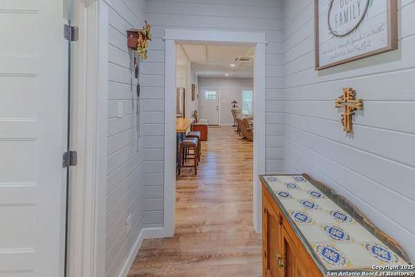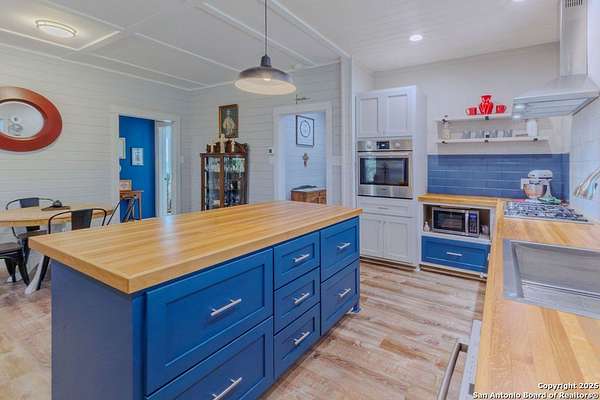 Tucked away under a canopy of majestic oaks, 872 Oak Drive in Blanco is a slice of Hill Country heaven-8.96 ag-exempt, unrestricted acres where nature, comfort, and craftsmanship come together in the most welcoming way. From the moment you arrive, the oversized front patio greets you like an old friend, inviting you to slow down and take in the peaceful surroundings. Step inside and you'll immediately notice the care and detail poured into this newer custom home-butcher block countertops, open shelving, Bosch appliances, and warm natural light flooding in from thoughtfully placed windows. Just beyond, a spectacular Florida room adds an additional 256 sq ft of outdoor living, wrapped in 14 windows that bring the outdoors right to your feet. This versatile space could easily be updated to fully conditioned living area, expanding year-round usability and opening the door to endless possibilities. Every inch of the home feels intentional, cozy, and beautifully functional. But the magic doesn't stop at the door. Step outside and feel the breeze as you walk the land-fully fenced, with a cross-fenced area perfect for animals to lounge beneath the wide arms of a mighty oak. Fruit trees-peach and olive-dot the property, offering both beauty and bounty. For the creatives or the doers, an insulated workshop awaits with a roll-top door, side-covered area, dedicated 200-amp power, and its own electrical meter-ready for any passion project. Water? You're covered with a 20,000-gallon Pioneer rainwater collection tank already in place. The rest of the land is wide open and ready for whatever dream you bring-gardens, additional structures, animals, or simply space to breathe. No restrictions. Just wide Texas skies, privacy, and a home that truly feels like a retreat. Come experience it-you won't want to leave.
