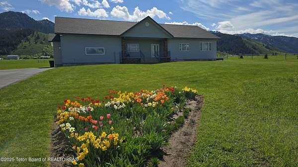 Offered below tax assessed value! A timeless custom home that bucks the trends! Four years of functional design went into the intricacies of this 3 bedroom, 3 bath home of approx. 3,027 square feet with a 3 bay attached garage on 2.19 irrigated acres. With the Wyoming way in mind there is a bonus sun room for year round enjoyment. The finished basement with full bath and storage has private access from the garage perfect for guests and short or long term leasing. Maintenance free, endless exterior steel siding, custom acrylic showers for easy cleaning, hydronic in floor radiant heat, master bathroom built in steam shower, hot and cold car wash spickets in garage with decorative concrete floors, several solid wood pocket doors, custom Stacy Heiner cherry cabinets in the kitchen with full slab granite countertops, vented propane cooktop, double built in ovens, whole house security system and individual thermostats in each room are a few of the many special features of this immaculate home. A few other notable mentions are the 9 foot garage doors, 25 feet deep bays, back up propane generator included with 1000 gallon buried propane tank, paved asphalt driveway, heated towel racks in the master bathroom, custom hickory cabinets throughout the home, energy efficient split units for air conditioning and heat, well insulated 6" exterior walls, trex decking, and a roof designed for heavy snow load without the need for snow shoveling. This home has it all!!! Flower gardens with strawberries, rhubarb, asparagus, and a raspberry patch are an added delight! The surrounding lawn has underground sprinklers and the property is very unique bordering large acreage with magnificent mountain views! Horses and chickens allowed, build a greenhouse, bring your RV too! Cross country ski right from the house, Palisades Reservoir within a 15 minute drive, nearby elk refuge and national forest. 5 min from the Salt River and world famous Jackson Hole within 45 minutes provides every outdoor recreation you can imagine!