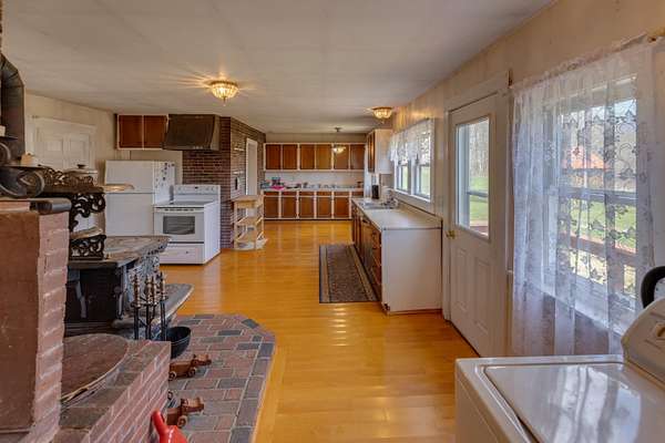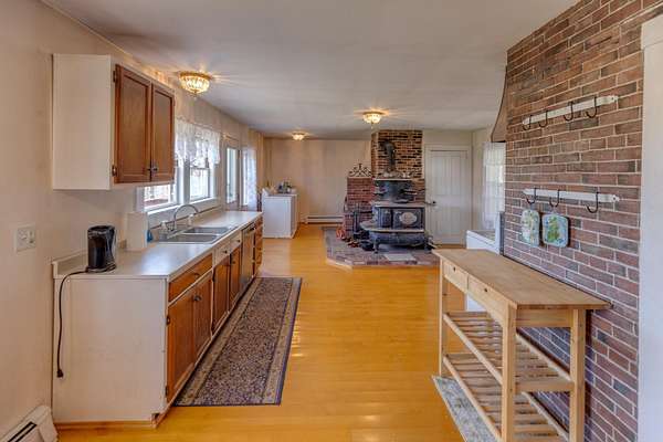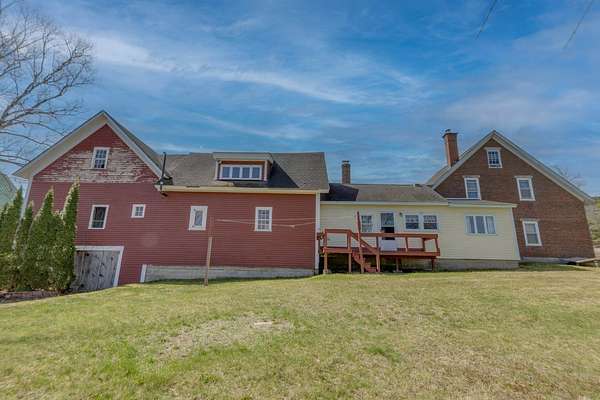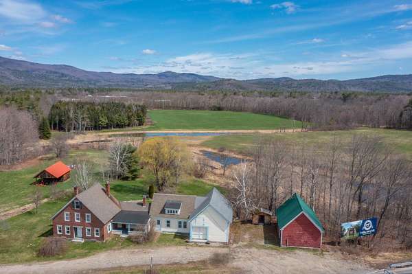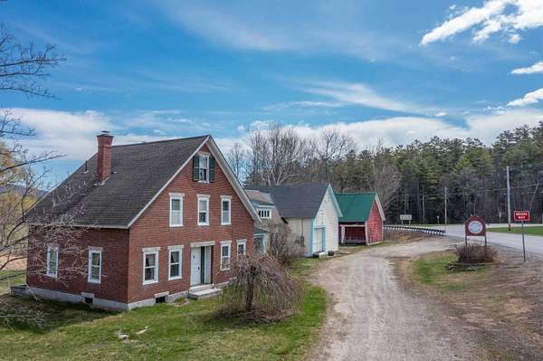 The Circle House - Plymouth, NH! Historic 1850s brick farmhouse located on 5.9 +/- acres of land with premium exposure on Tenney Mountain Highway and a spacious backyard with mountain views. Currently set up as a single-family residence, this could be an ideal business location or multi-family with plenty of parking. Impressive masonry construction filled with character from a bygone era. Custom-built-ins, rare, 2 antique Crawford Wood stove's, wide plank wood flooring, and a large detached 3-stall barn. The original brick home has laundry on the main level, a full bathroom, a kitchen, a living room, and one bedroom. Upstairs, you will find two more bedrooms, a ¾ bath, two additional rooms, and a nice reading nook. The addition to the right side has a full bathroom, a partially finished room, and a large loft space above. The attached barn has many original features, such as hand-hewn beams, and serves well to store firewood or any other items. Enjoy the beautiful custom-built waterfall and pond in the backyard. Help offset some of your costs with the annual rental income from the Billboard. Ideal location near all Tenney Mountain Highway businesses, PSU, across the street from a brewery and restaurant, and quick access to I-93. Bring your ideas and schedule a showing today!