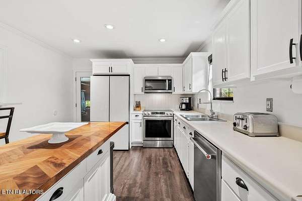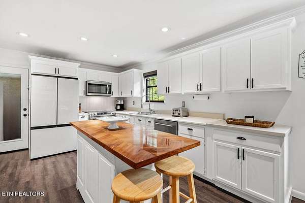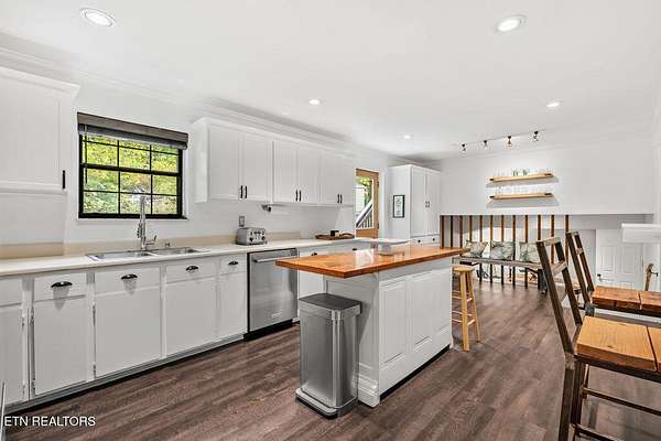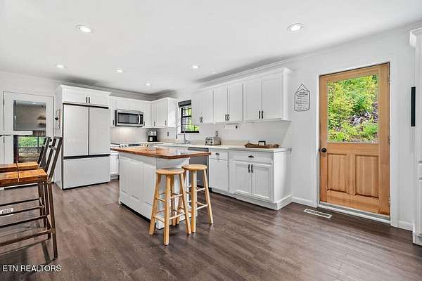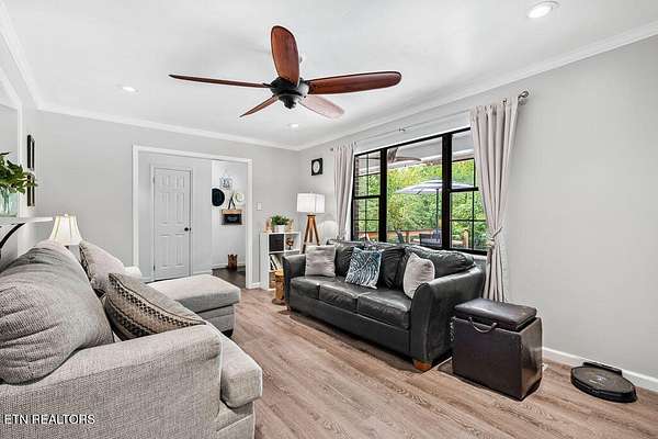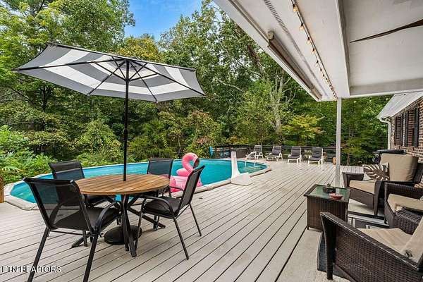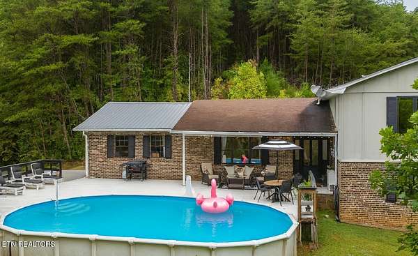 Prime South Knoxville location-private yet convenient with easy access to highways, shopping, downtown, and only 25 minutes to Neyland Stadium. This completely remodeled and upgraded property offers two parcels being sold together for a total of 3.92 unrestricted acres with endless possibilities. This 2,396 sq ft home features 4 bedrooms plus office/flex room, 2 baths, and a 2-car garage with extra guest parking. Inside, you'll find a beautifully updated kitchen with newer stainless steel appliances, new cabinets and countertops, island with eat-in bar, LVP flooring on the main level, crown molding, stylish light fixtures, recessed lighting, a brick feature wall with wood-burning fireplace, landscape lighting, and a spacious laundry room with sink and hanging area. The large primary bedroom opens to a wrap-around porch and deck, while multiple storage options add to the home's functionality. Recent updates include a new HVAC system (2018) and new water heater (2025). The property is designed for true outdoor living, offering a 33x18 oval semi-inground saltwater pool, three sizeable patio areas, multiple expansive decks, a jacuzzi, and a large firepit area-perfect for entertaining. Also included is a 960 sq ft barn/workshop and an unfinished 2-bedroom guesthouse/cottage, ready for your vision. This is a rare opportunity to own nearly 4 unrestricted acres with extensive upgrades and lifestyle amenities, all in a highly desirable hidden South Knox setting. Hurry, this one won't last long-schedule your showing today! (Main house is on parcel ID 15907001, and adjoining Parcel ID 15907003 is undeveloped and raw land) (Extra parking and turnaround available)