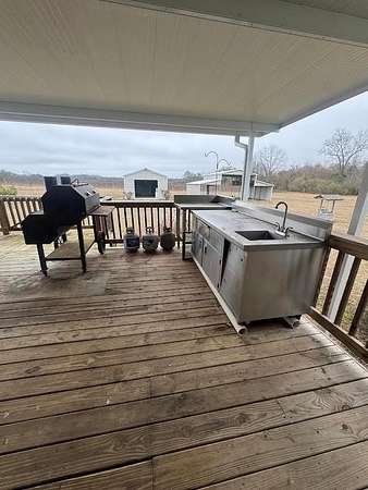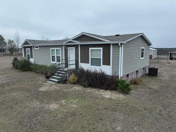 Discover peaceful country living with modern comfort on this beautiful 7-acre property featuring a 2021 Scotsman Homes mobile home offering approximately 1,700 square feet of thoughtfully designed living space. The land is mostly cleared with scattered hardwoods, providing the perfect balance of open space and natural privacy-with abundant wildlife, including frequent deer and turkey sightings right on the property. Inside, this 3-bedroom, 2-bath home offers a desirable split floor plan for added privacy. The spacious primary suite features a luxurious garden tub, separate walk-in shower, dual vanities, a walk-in closet, and a private toilet room. The open-concept kitchen is ideal for entertaining, highlighted by a large center island and ample cabinetry flowing seamlessly into the main living area. Step outside to enjoy the covered wooden back deck, complete with a built-in outdoor kitchenette, making it perfect for gatherings, grilling, or relaxing evenings outdoors while enjoying the sights and sounds of nature. The property also includes a large metal barn, a separate utility building, and a gravel driveway, offering excellent storage and functionality for equipment, hobbies, or outdoor recreation. This well-maintained property blends modern living with acreage, wildlife, and privacy-an excellent opportunity for anyone seeking a quiet country lifestyle with room to roam.