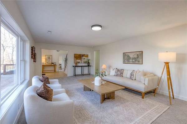 Nestled on 20.1 scenic acres, this refreshed earth-contact home offers exceptional privacy, space, and modern updates throughout. Recent improvements include a new roof, septic system, windows, cabinetry, flooring, and fresh paint, providing peace of mind and move-in-ready comfort. The main level features a spacious open kitchen with new cabinetry and stainless steel appliances, along with a separate laundry room conveniently located just off the kitchen. Multiple living areas include a formal living room, formal dining room, and a cozy hearth room-perfect for entertaining or relaxing by one of two fireplaces. Also on the main level are two large, non-conforming rooms offering flexible living options. One features an adjacent en-suite bath, while the other is adjacent to an additional full bathroom-ideal for guests, a home office, or main-level living. Upstairs, a loft area leads to two bedrooms and an additional full bath, providing extra space to grow. Step outside onto the large new deck and take in the expansive acreage-perfect for outdoor recreation, gardening, exploring, or simply enjoying the peaceful views. This unique property seamlessly blends modern updates with wide-open space, offering privacy and comfort while remaining conveniently close to city amenities.