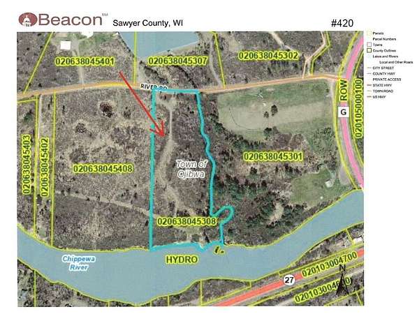 (420/KG) Located in Ojibwa, WI is 6.8 +/- acres on River Rd along the Mighty Chippewa River with 450+/- feet of river frontage with some towering pines throughout the property makes this the perfect escape location from the hustle and bustle of LIFE. Come and relax along the river and enjoy the sounds of the bubbling Crazy Horse Creek which runs the entire length of the property. There is a winding driveway that gives lots of privacy and a clear camping location so that you can enjoy what this spot has to offer. Located minutes away from the boat landing for the Chippewa Flowage and 1/4 mile from the Tuscobia Trail for all your recreational needs. Come take a look at this one! Taxes: $536.19 (04-38N-06W Prt Govt Lot 3)