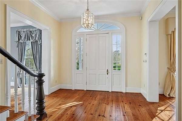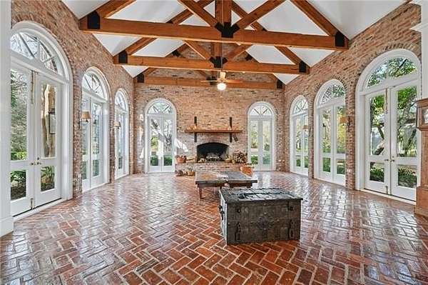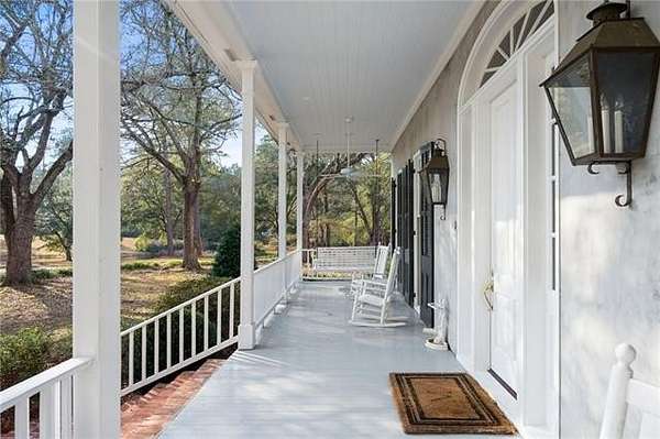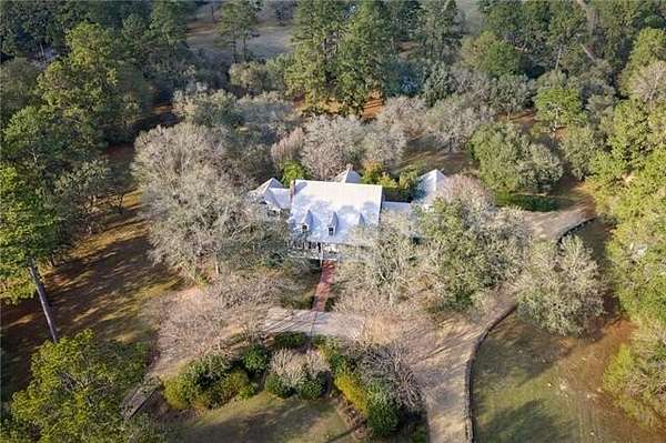 Set across more than 22 acres of rolling, scenic land, this exceptional estate is framed by over 50 magnificent live oak trees that create an unforgettable sense of place. Rich in character and surrounded by natural beauty, the property offers a rare blend of Southern heritage and refined craftsmanship. From the moment you step inside, reclaimed heart pine floors and exposed beams set a warm, authentic tone. Their timeworn patina tells a story, infusing the home with depth, texture, and quiet elegance. A one-of-a-kind stair banister--salvaged from a historic New Orleans mansion--serves as a dramatic centerpiece, seamlessly tying the home's past to its present. Complementing this character are antique red bricks sourced from Jackson, Mississippi, whose earthy hues and aged finish add yet another layer of distinction. Soaring ceilings throughout the home enhance the sense of scale while allowing natural light to pour in, creating bright, open living spaces that feel both expansive and inviting. The residence rises three stories, offering generous room for everyday living, hosting gatherings, and taking in peaceful views of the surrounding landscape.