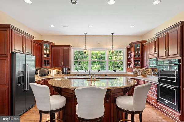 COTTAGE FARM ESTATES - Welcome to this STUNNING 6 Bedroom, 5 Full & 2 Half Bath Custom-Built Colonial on 8.11 Acres of Impeccably Landscaped Maryland Countryside -- In sought-after Cottage Farm Estates. This custom-built masterpiece is a true showcase of craftsmanship, luxury, and timeless design, boasting over 8 acres of serene privacy and meticulous landscaping by Homestead Gardens. Step into the grandeur of a marble-floored foyer featuring a gorgeous, curved staircase, complemented by a secondary back staircase for convenience and flow. The soaring 10'6" ceilings on the main level and 9'6" ceilings on the second floor create an open, airy elegance throughout. The immaculate gourmet kitchen is designed for the serious chef with two distinct prep zones-a cooking side and a baking side. It features: . 10-burner professional-grade stove - between the 2 cooktops . 3 wall-ovens . Granite countertops . Butler's pantry . Stainless-steel appliances The formal dining room is adorned with a custom plaster medallion ceiling and Waterford light fixtures, while triple crown molding and picture-frame detailing grace both the first and second floors, adding to the estate's architectural beauty. Luxury living continues with three custom wet bars, three gas fireplaces, and gleaming hardwood floors across 7,000 sq. ft. on the first two levels. Third level is carpet only. The main-level primary suite is a private sanctuary, featuring: . Cathedral ceilings . Sitting room with a double-sided gas fireplace . Wet bar . His and hers walk-in closets . Bose surround sound system (throughout the entire main level) The luxurious primary bath pampers with Italian ceramic tile, a soaking tub with whirlpool jets, steam therapy shower, and a custom mahogany vanity. The upper level offers four spacious bedrooms, each with its own full en-suite bath, while the third floor features a private den/office or potential 6th bedroom-ideal for remote work or guest accommodations. Additional High-End Features Include: Two laundry rooms on the main level . Plantation shutters throughout . All oversized UV windows for natural light and energy efficiency . 20 KW whole-house Generac generator (200 amp) . 1,200-gallon owned propane tank . Professional radon mitigation system . Three HVAC systems with four zones (all recently updated) . Circular driveway with abundant parking . 3-car side-entry garage This home is professionally maintained with a relentless attention to detail. Designed for entertaining intimate and large parties. Every inch of this estate reflects quality beyond comprehension - a rare gem in one of Maryland's most coveted countryside communities.