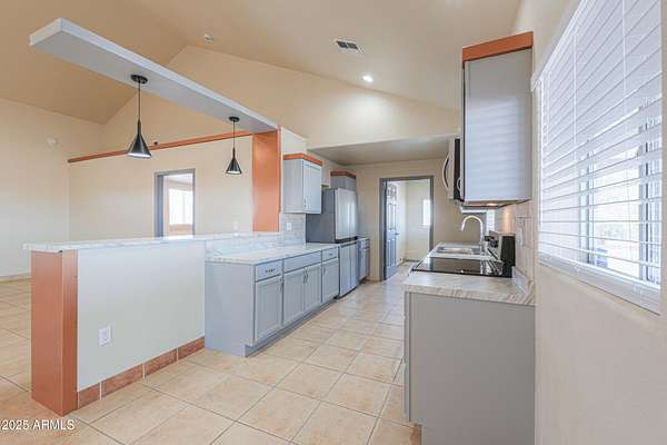 Welcome to the Oasis in the desert. Home, Land, horse property and on well water., so no need to haul water. New kitchen, all new appliances and upgraded counter tops. Custom Home 1740 sq. ft. 3 Bed 1.75 Bath Home on 1.59 acres fully fenced. This home has all tile flooring. No carpet here. Even bedrooms have tile flooring. Steel construction with metal lifetime roof. Front covered patio to enjoy mountain sunsets. Horse corral and shade on north end of property with lots of pavers. RV hookup and plenty of area to ride horses, atv, or off road. outdoor storage building and lots of mature landscape. Check out the photos. The photos tell the story.