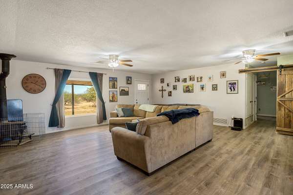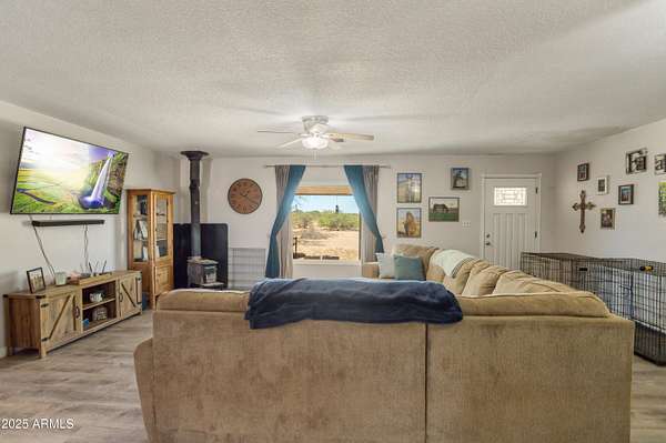 ''If you're looking for a place to spread out, enjoy amazing sunrises and sunsets, and live the country life with some modern comfort-this is it! Sitting on 4.1 acres with stunning mountain views, this open-concept 3-bedroom, 2-bath home offers plenty of space for you, your animals, and your hobbies. It's set up for horses with a 5' non-climb horse fence, a gated entrance, and several outbuildings-including a chicken coop and a large 10x16 shed. The fenced backyard, firepit, and big covered front porch make it perfect for relaxing or entertaining. Inside, you'll find a cozy living room with a freestanding wood stove, an updated kitchen with quartz countertops, and beautifully redone bathrooms-including a clawfoot tub in the primary suite.Other great features include updated wood laminat