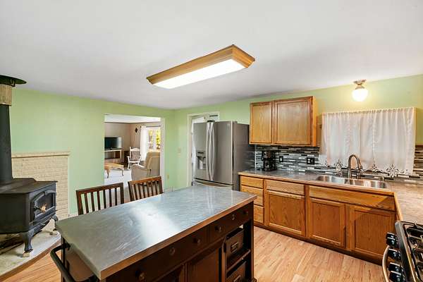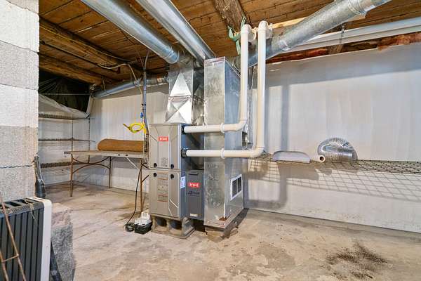 - Forced Air, Natural Gas, Wood, Wood Stove