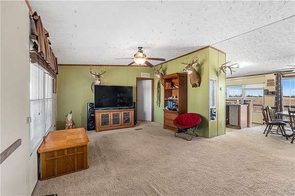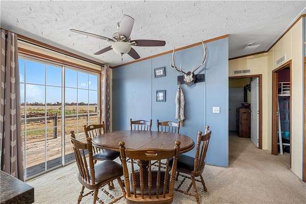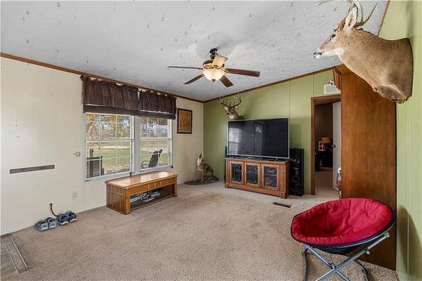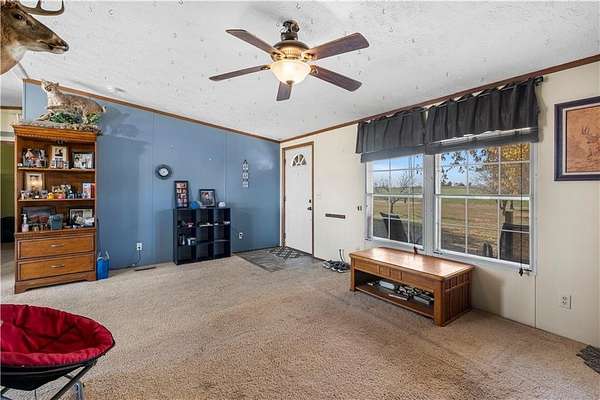 Experience the peace and quiet of rural living on 2.15 acres +/- in Vernon County within the NEVC School District. This 2007 manufactured home offers 1323 square feet with 3 bedrooms and 2 bathrooms, providing a comfortable layout that flows easily throughout. The home features central heat and air, a main living area that opens to the kitchen and dining space, a metal roof for long lasting durability, a permanent foundation, and Rural Water serves the property. The setting offers space to enjoy the outdoors while still being easy to maintain. Positioned between Nevada and El Dorado Springs, the location provides a short drive to shopping, dining, and everyday essentials, with the nearest hospital less than 18 miles away. This property is a strong option for first-time homebuyers, those looking to downsize into a quieter setting, anyone ready to make a move toward rural living, or buyers seeking an investment opportunity. Shown by appointment - call the listing agents today!