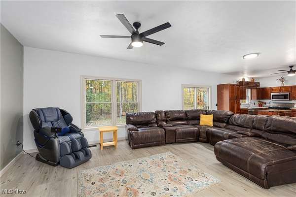 Perched on a private hilltop surrounded by trees, this 3-bedroom, 2.5-bath contemporary home offers the best of country living with comfort, space, and versatility. Set on roughly 6 wooded acres, it provides both privacy and convenience-just minutes from town yet tucked away in a peaceful setting. Built in 2004 and thoughtfully updated, the home welcomes you with an open layout designed for everyday living. The main level features new high-end flooring, a spacious kitchen with island, and professional-style stainless steel appliances. The kitchen opens to a bright living area, creating the perfect gathering space. Off the main entry, two additional rooms offer flexibility-one with a tray ceiling that could serve as a dining room, office, or bonus living area. The primary suite includes a walk-in closet and private full bath, with an adjoining flex room currently used as a nursery. This space could easily function as a home office, sitting room, or even a fourth bedroom. Two additional bedrooms are generously sized and include spacious closets, offering plenty of storage and comfort for family or guests. The full unfinished walk-out basement features poured concrete walls, tall ceilings, and direct outdoor access-ideal for storage, a workshop, or future expansion to suit your needs. Comfort and efficiency come from a high-efficiency propane furnace with a 1,000-gallon underground tank, central air, and a whole-house wood burner. The home includes an attached 2-car garage with a concrete drive, while a separate 42x64 pole barn built in 2008-with its own power and ample space for storage or projects-adds even more versatility. Schedule your showing today to experience this private hilltop retreat that blends function, flexibility, and the beauty of country living.