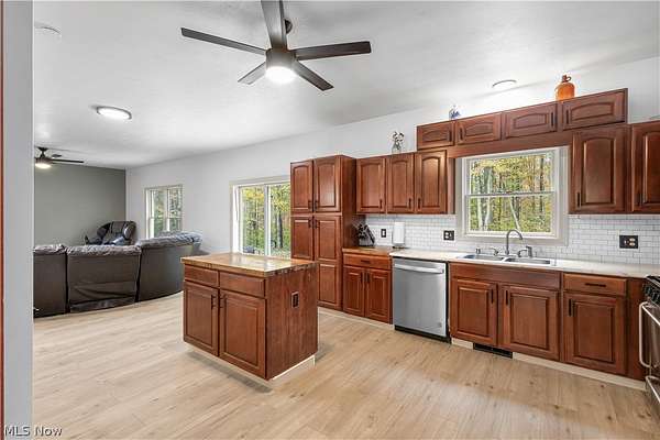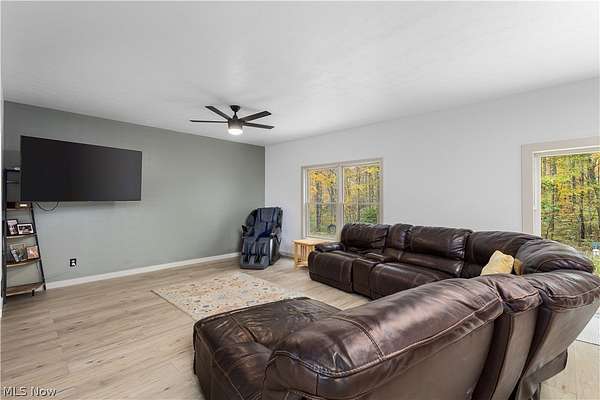 Perched on a private hilltop surrounded by trees, this 3-bedroom, 2.5-bath contemporary home offers the best of country living with comfort, space, and versatility. Set on roughly 6 wooded acres, it provides both privacy and convenience-just minutes from town yet tucked away in a peaceful setting. Built in 2004 and thoughtfully updated, the home welcomes you with an open layout designed for everyday living. The main level features new high-end flooring, a spacious kitchen with island, and professional-style stainless steel appliances. The kitchen opens to a bright living area, creating the perfect gathering space. Off the main entry, two additional rooms offer flexibility-one with a tray ceiling that could serve as a dining room, office, or bonus living area. The primary suite includes a walk-in closet and private full bath, with an adjoining flex room currently used as a nursery. This space could easily function as a home office, sitting room, or even a fourth bedroom. Two additional bedrooms are generously sized and include spacious closets, offering plenty of storage and comfort for family or guests. The full unfinished walk-out basement features poured concrete walls, tall ceilings, and direct outdoor access-ideal for storage, a workshop, or future expansion to suit your needs. Comfort and efficiency come from a high-efficiency propane furnace with a 1,000-gallon underground tank, central air, and a whole-house wood burner. The home includes an attached 2-car garage with a concrete drive, while a separate 42x64 pole barn built in 2008-with its own power and ample space for storage or projects-adds even more versatility. Schedule your showing today to experience this private hilltop retreat that blends function, flexibility, and the beauty of country living.